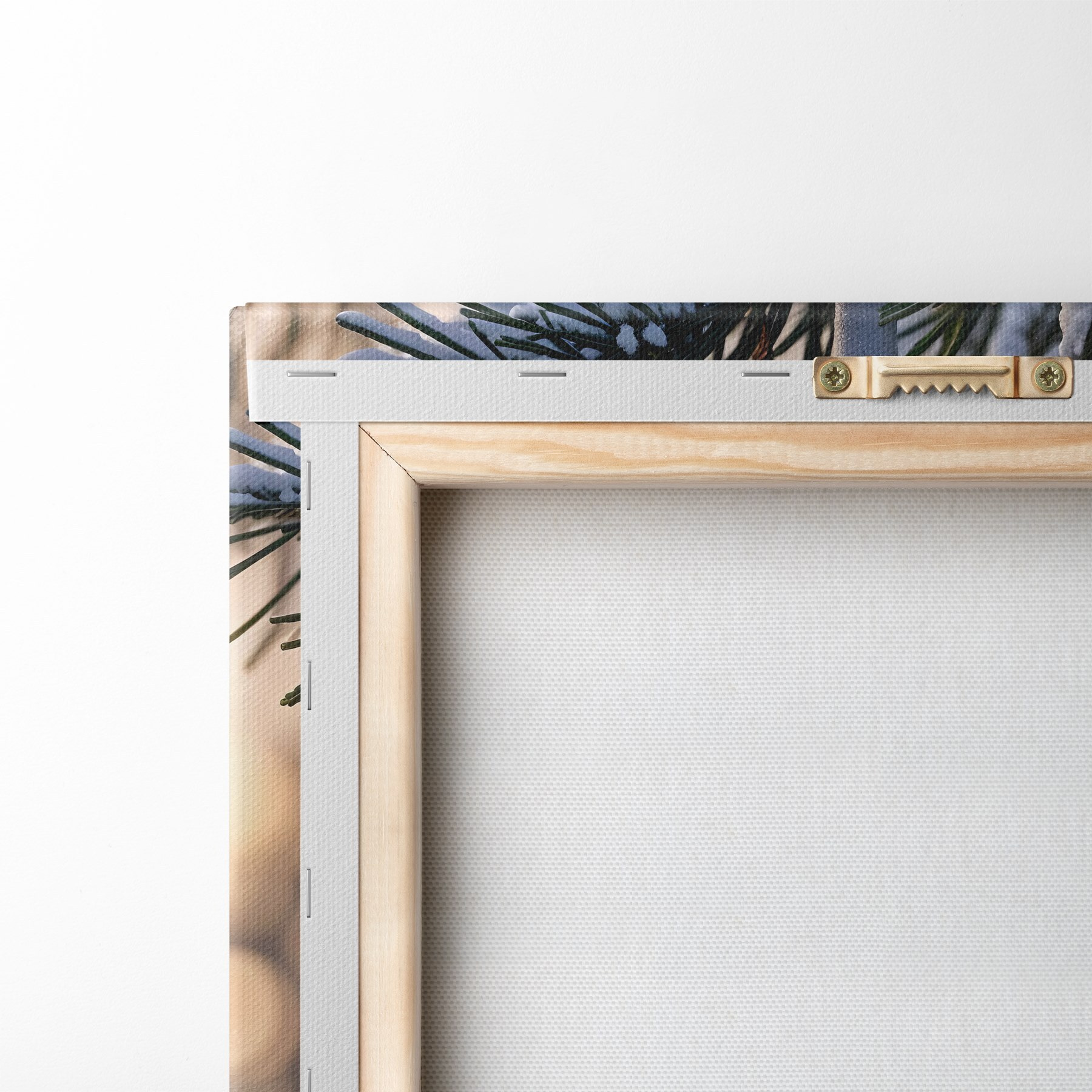 Je kunt het schilderij ophangen aan schroeven. Hiervoor leveren we bevestigingen bij onze foto's, zodat je de foto gemakkelijk kunt ophangen.