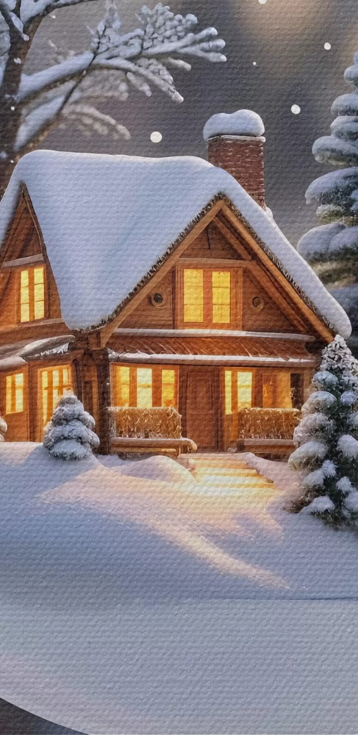 Schilderij Een glazen kerstbol met een besneeuwd winterlandschap aan de binnenkant, met een gezellige hut in het bos met dennenbomen Art. s42236