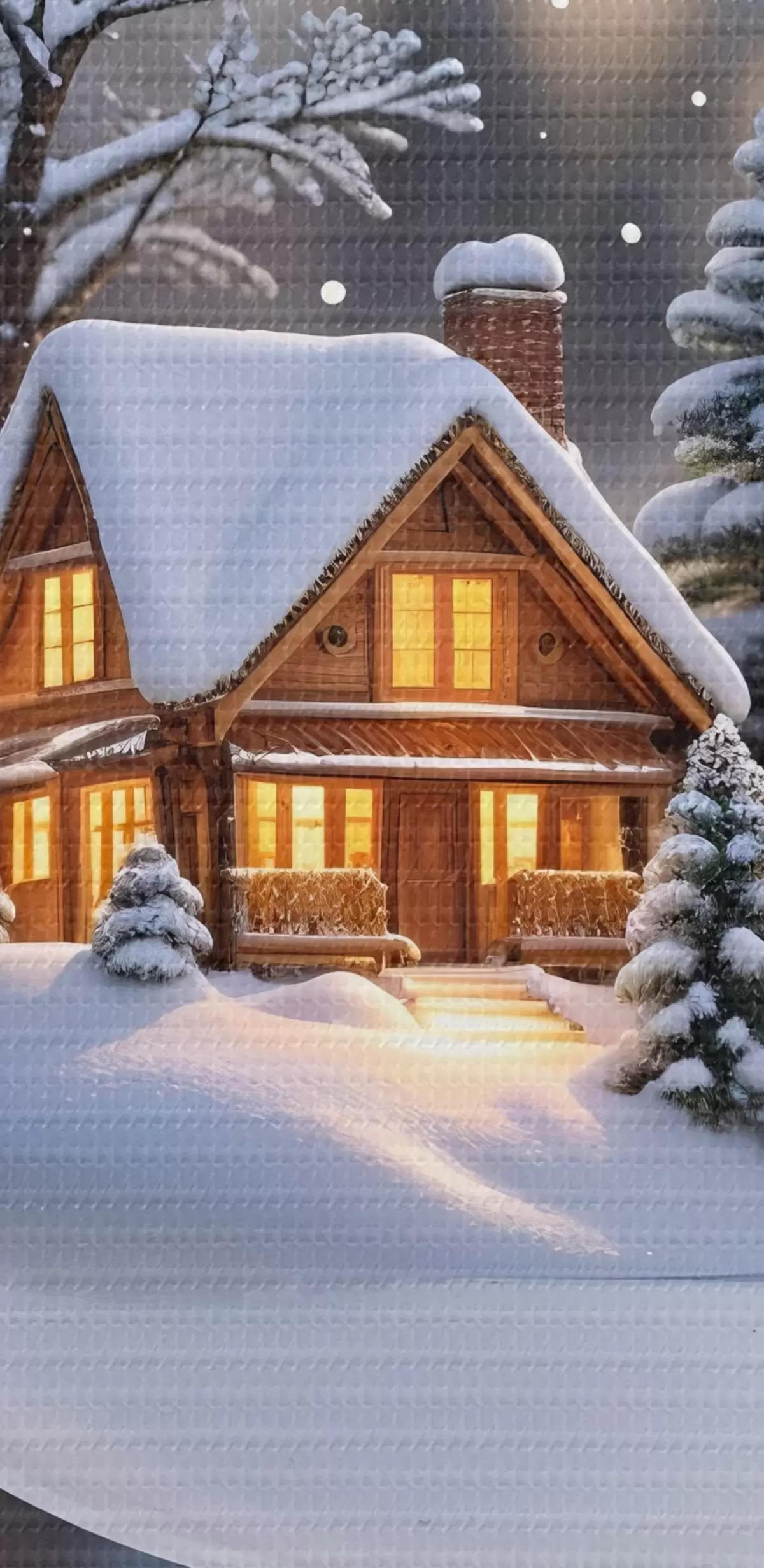 Schilderijen Een glazen kerstbol met een besneeuwd winterlandschap aan de binnenkant, met een gezellige hut in het bos met dennenbomen s42236