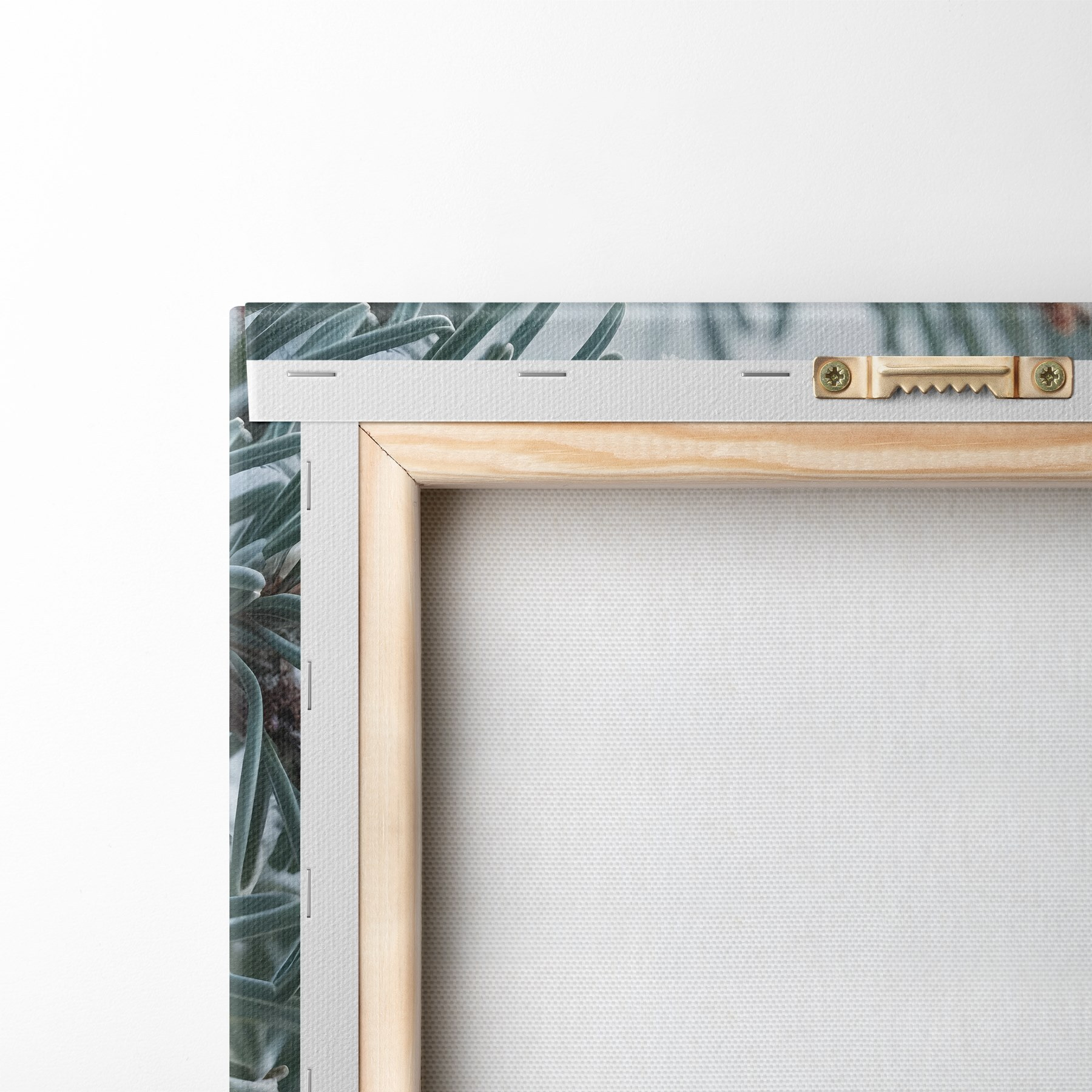 Je kunt het schilderij ophangen aan schroeven. Hiervoor leveren we bevestigingen bij onze foto's, zodat je de foto gemakkelijk kunt ophangen.