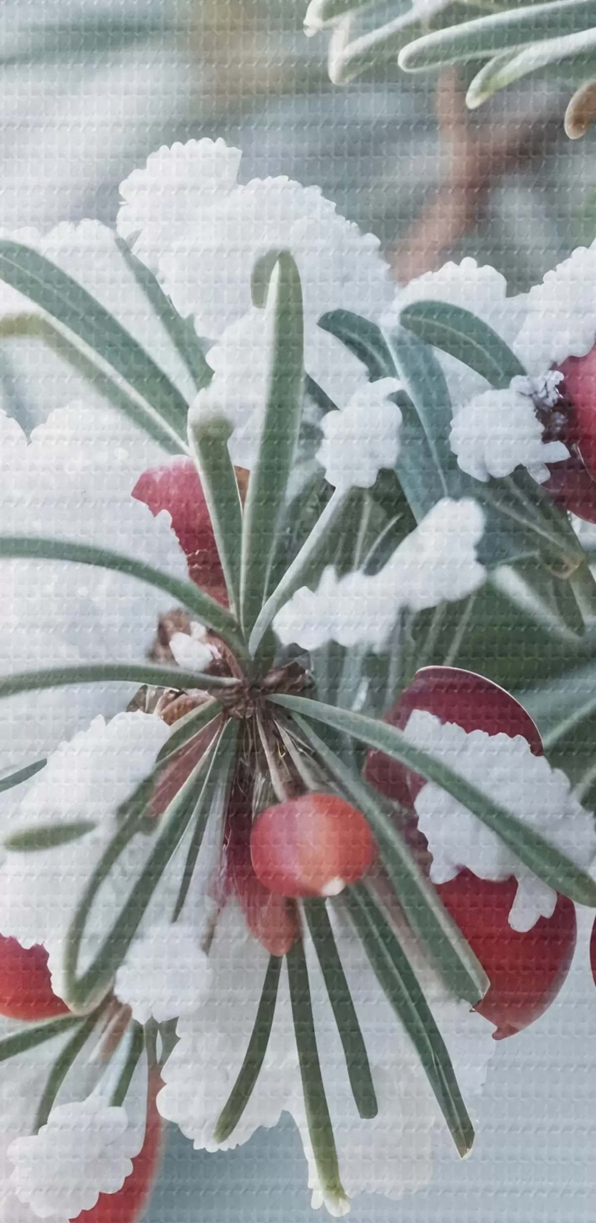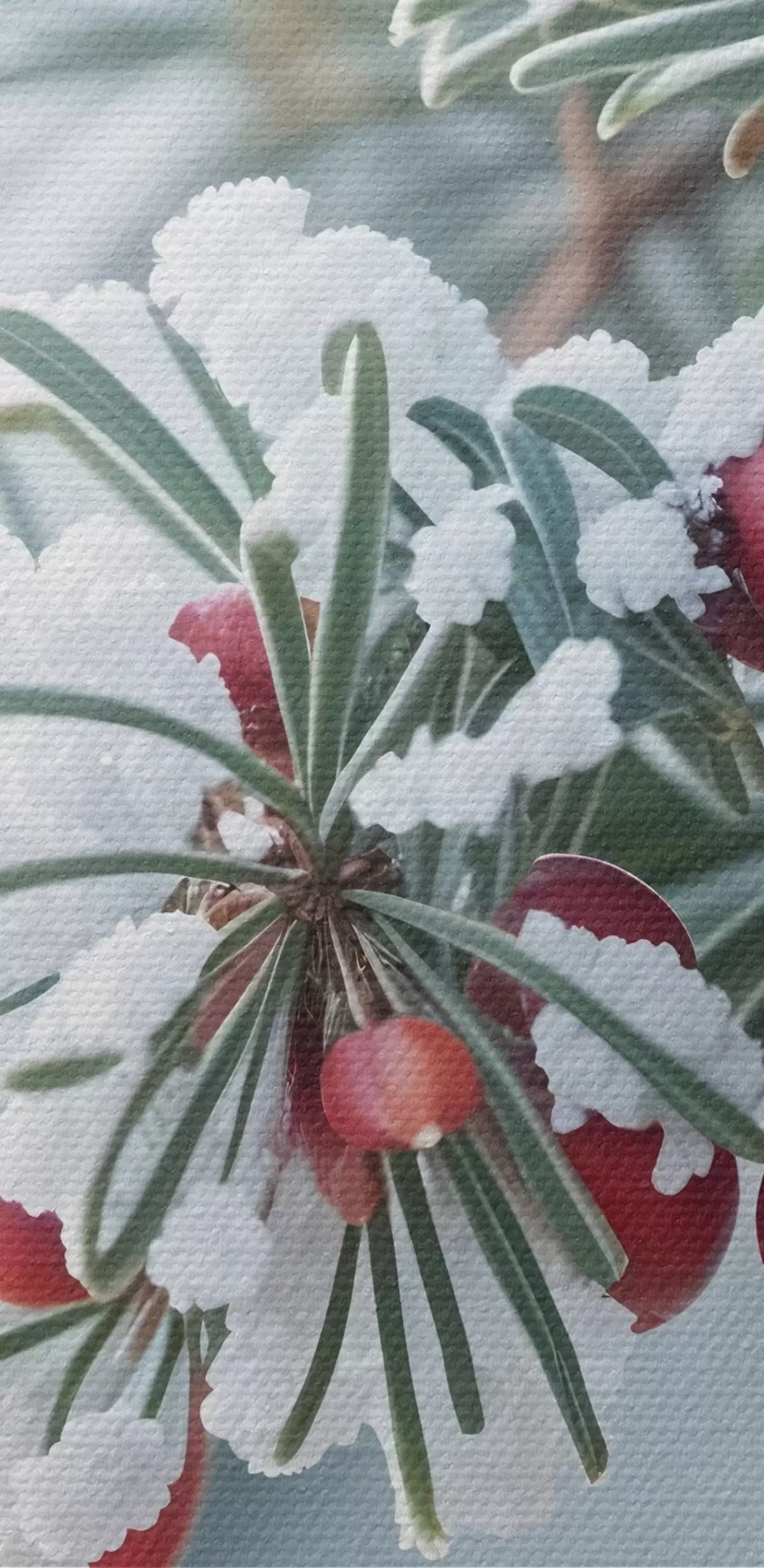 Schilderij Besneeuwde dennentak met rode bessen , winterscène Art. s42238