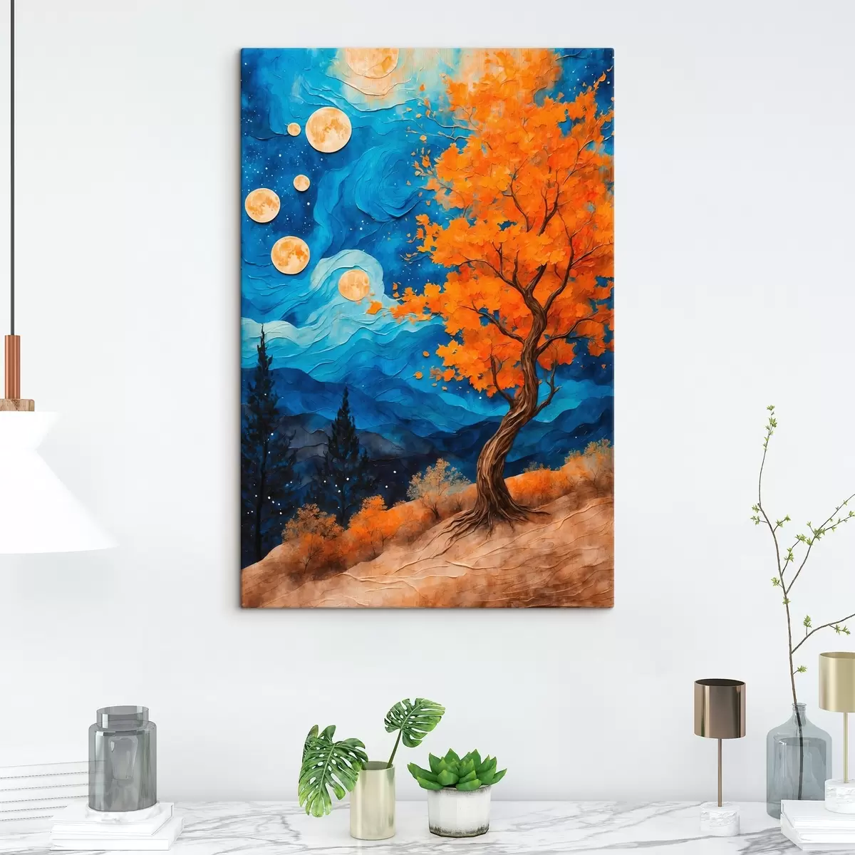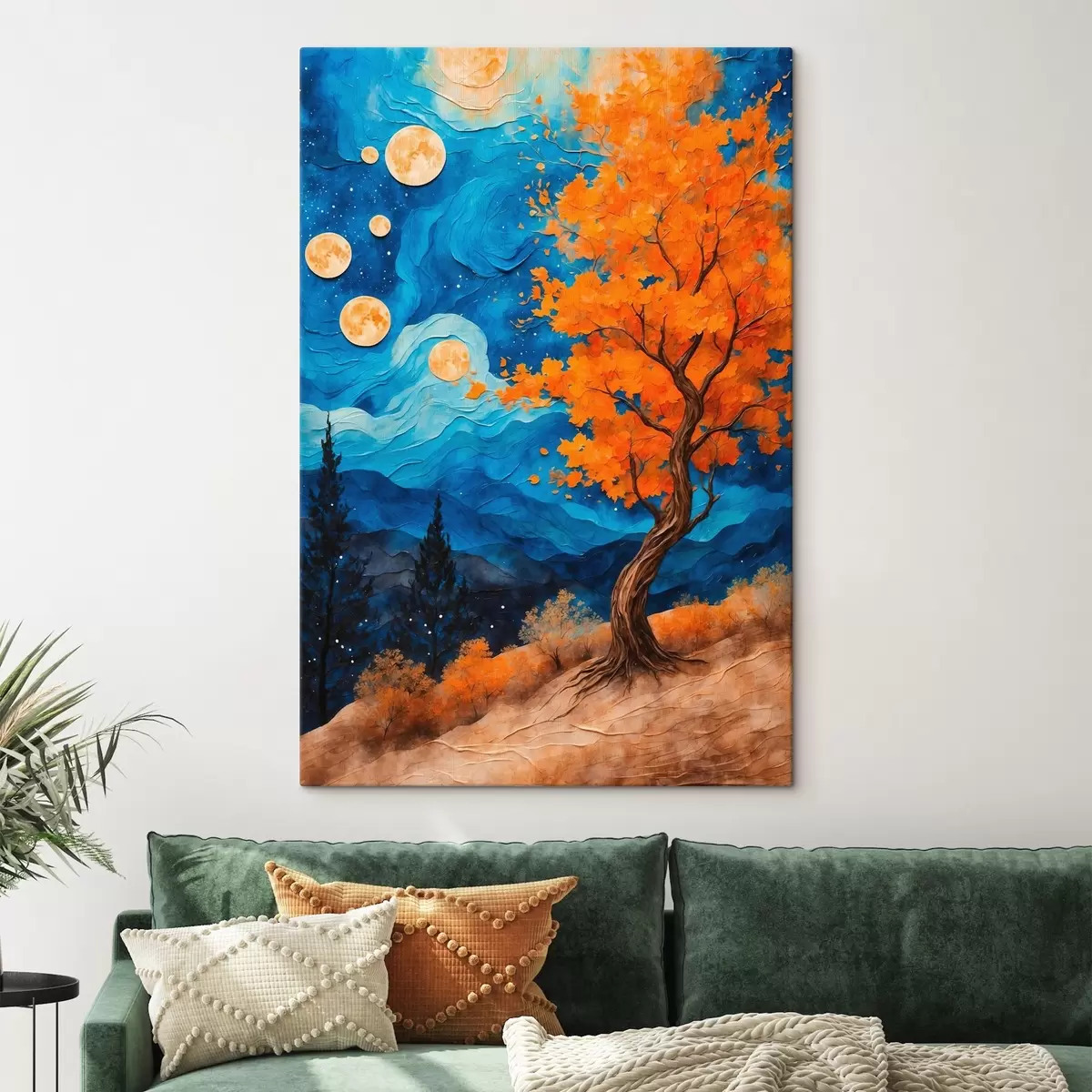 Schilderij Boom die 's nachts op een heuvel groeit Art. s42274
