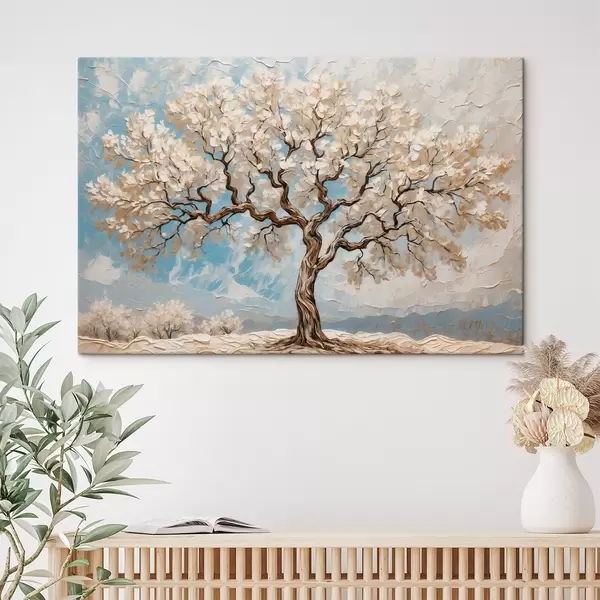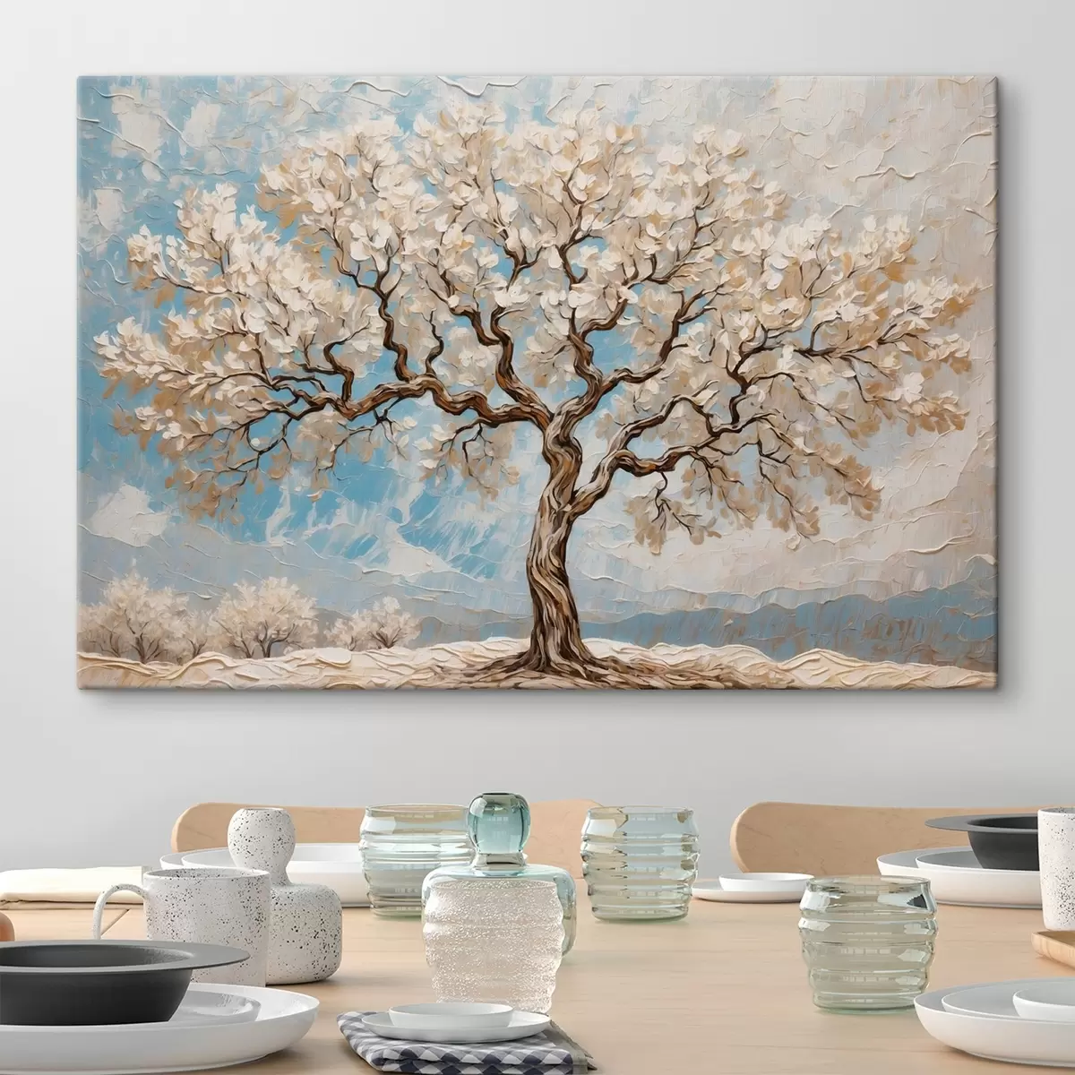 Schilderij Witte boom op blauw-witte achtergrond Art. s42275