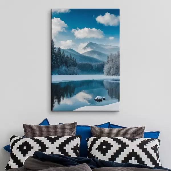 Schilderij Uitzicht op winters bos en bergen Art. s42278