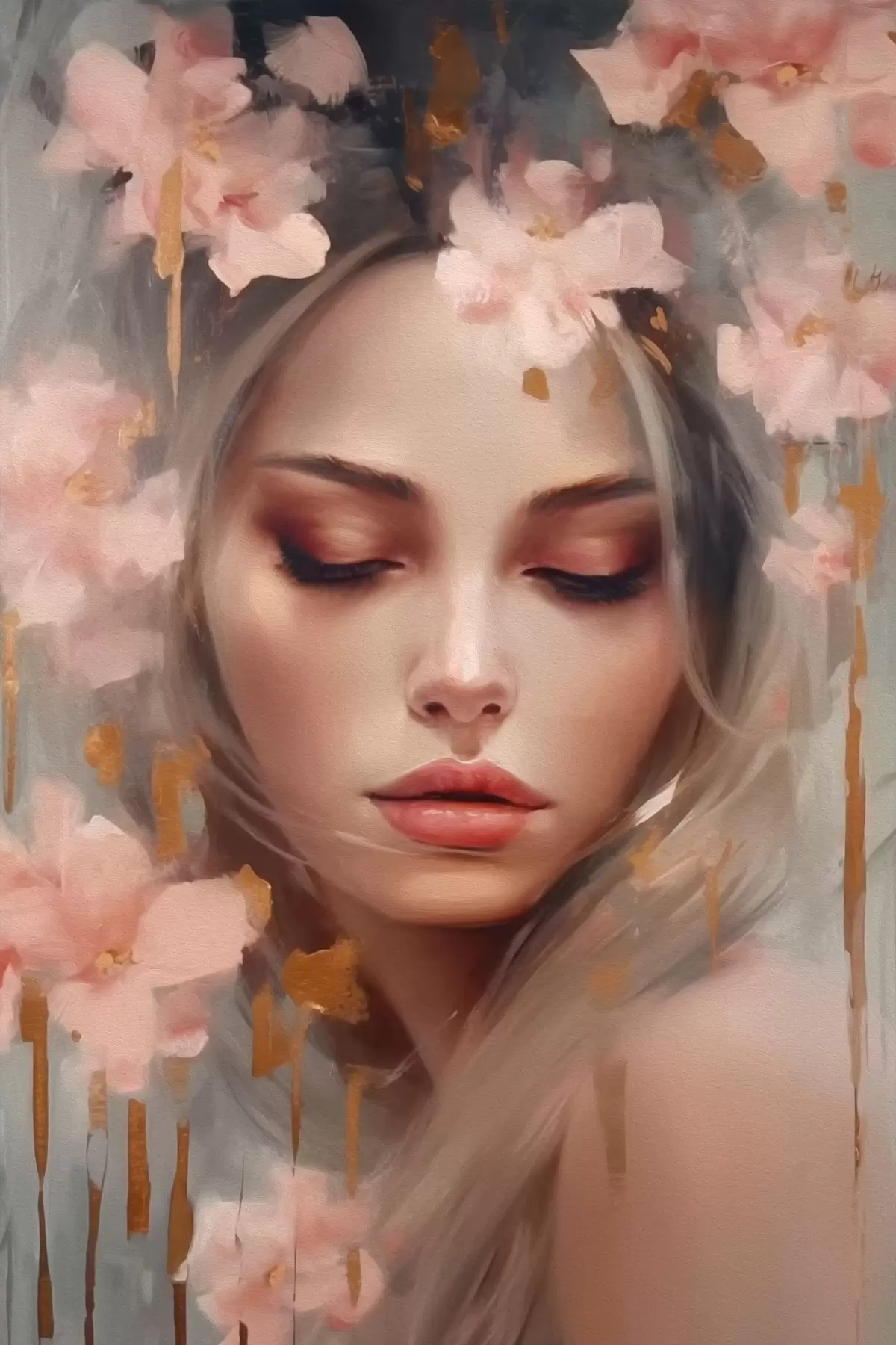 Schilderij Mooi meisje en bloemen Art. s42299