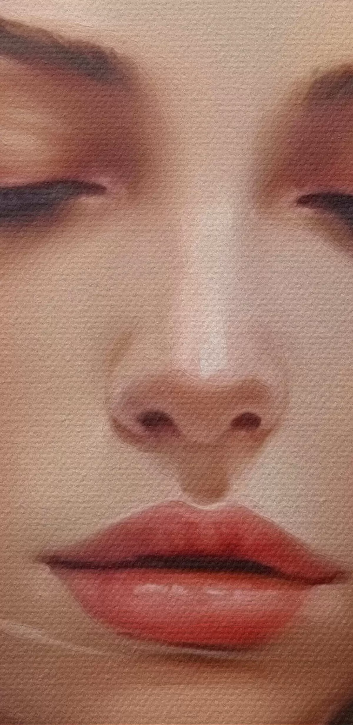 De fijne weving van draden op dit doek lijkt op het oppervlak van professionele schildersdoeken.