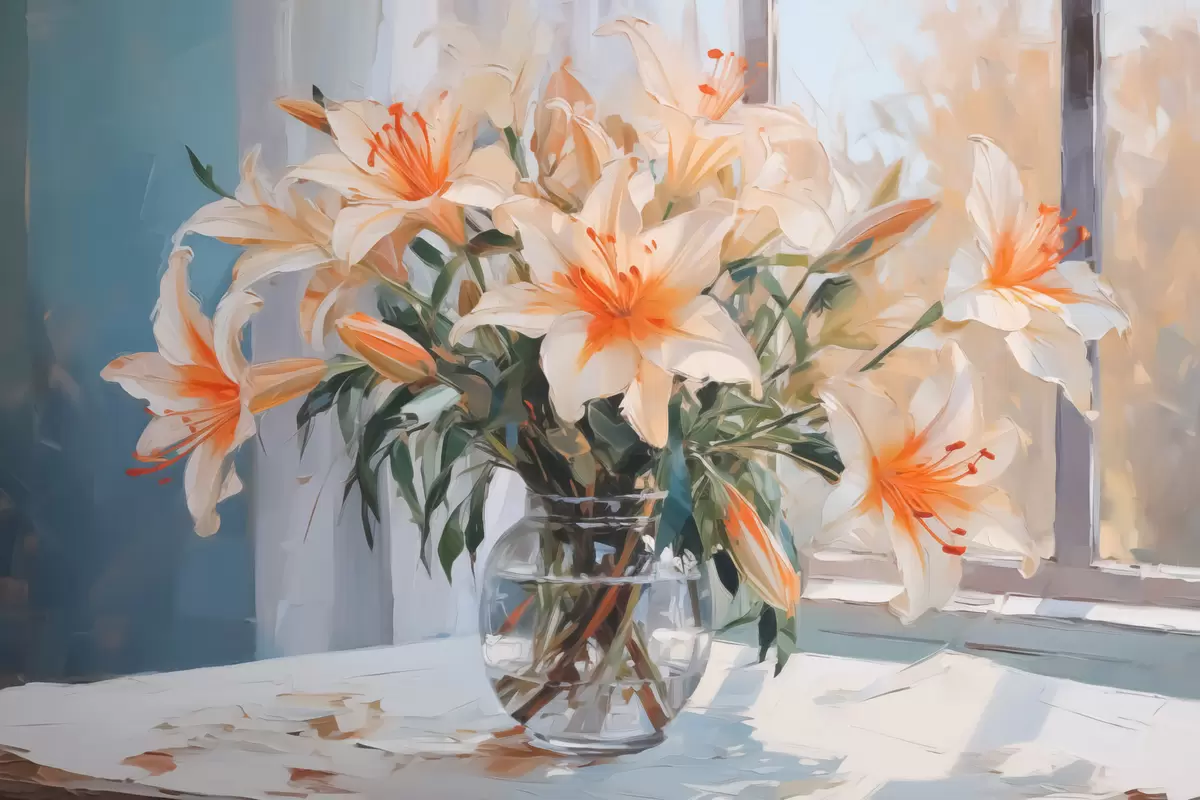Schilderij Lelies in een glazen vaas imitatie van schilderij Art. s42359