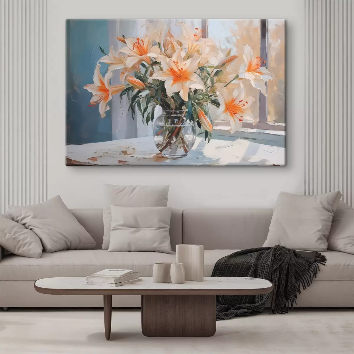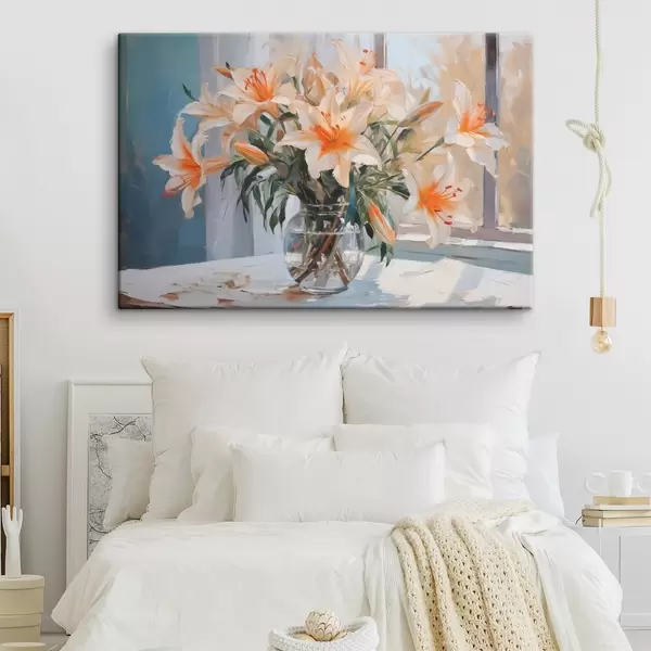 Schilderijen Lelies in een glazen vaas imitatie van schilderij s42359