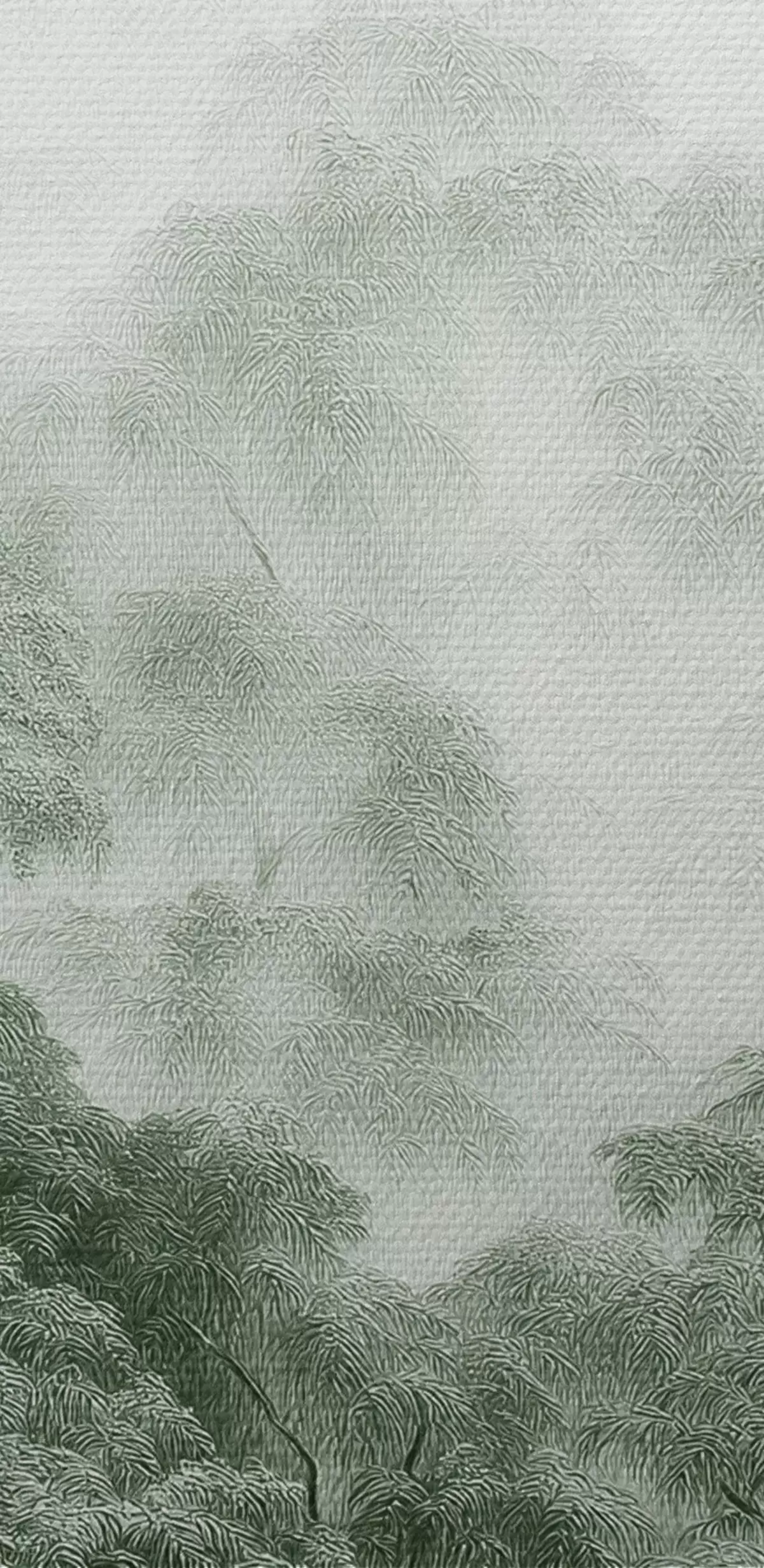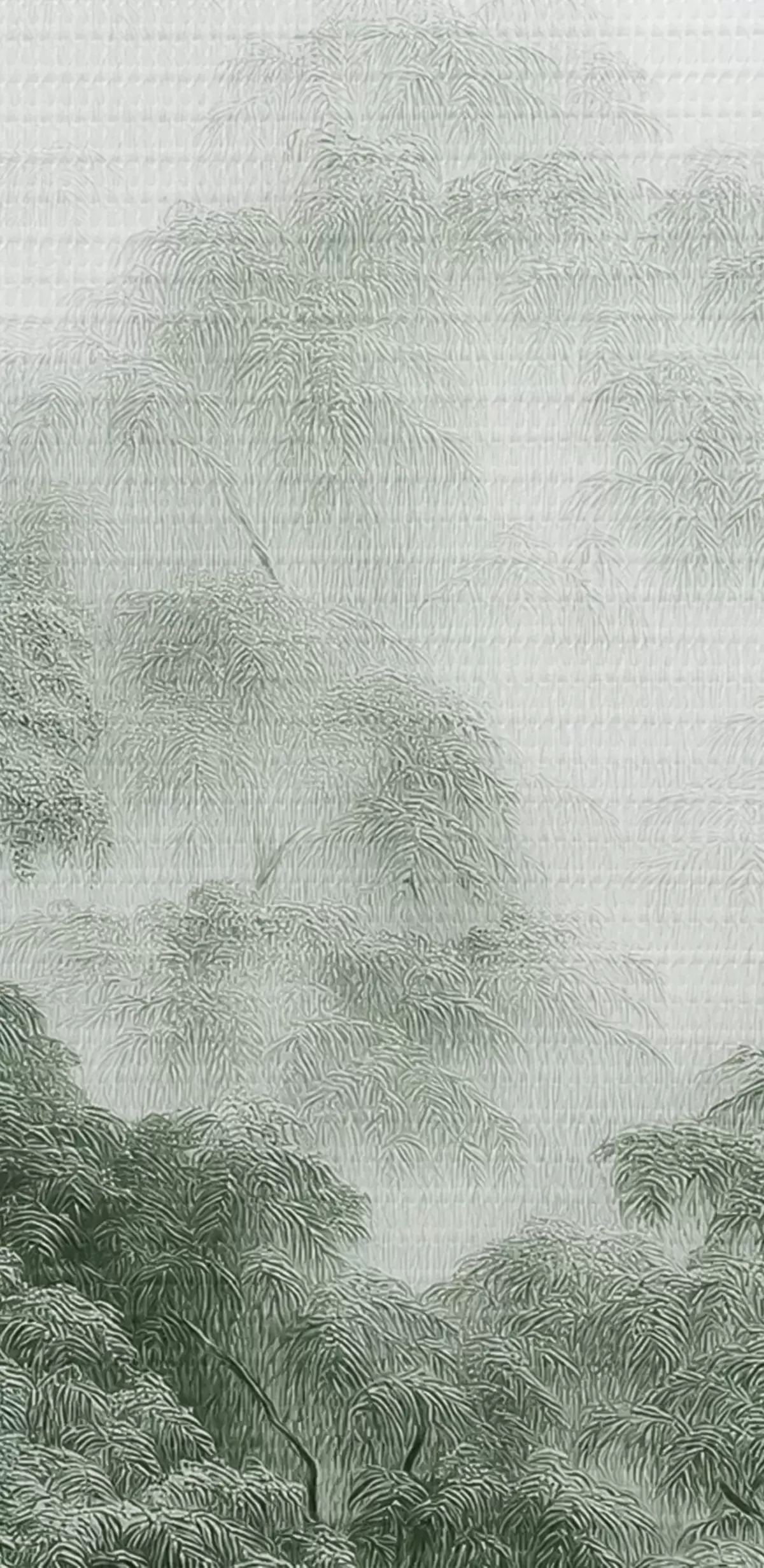 Schilderijen Tropisch bos in de mist, palmbomen, groene kleuren s42371