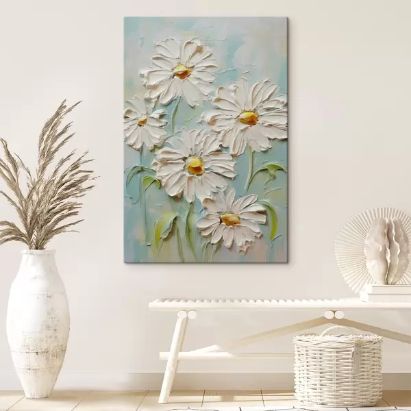 Schilderij Witte madeliefjes imitatie van verfstreken Art. s42422
