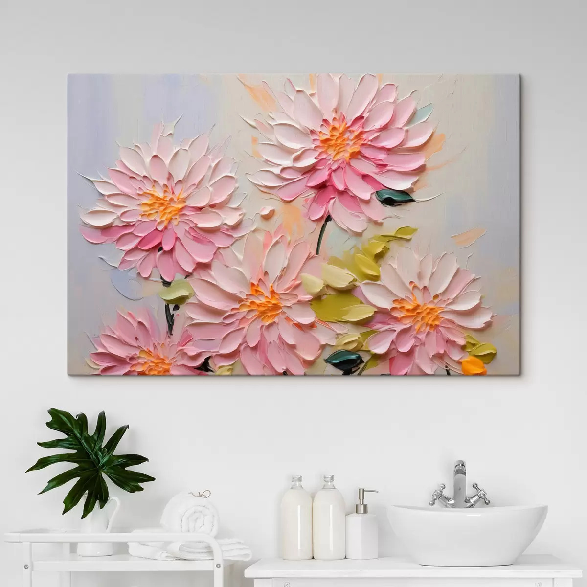 Schilderij Chrysanten imitatie van verfstreken Art. s42423