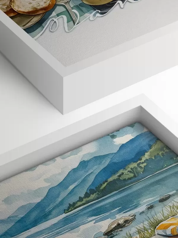 Schilderij Prachtig ontbijt in aquarelstijl, busleven, kamperen, bergen Art. s42429