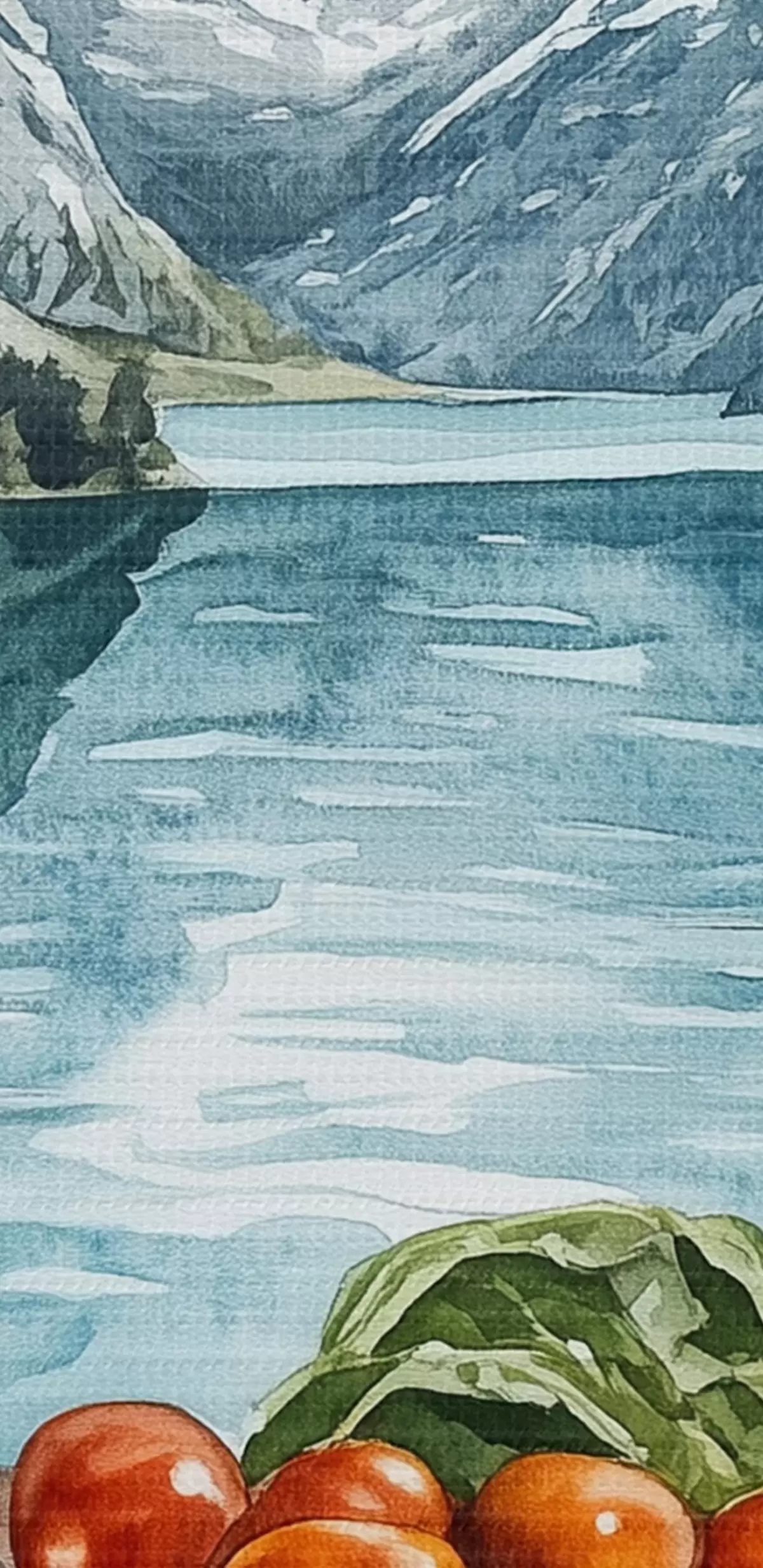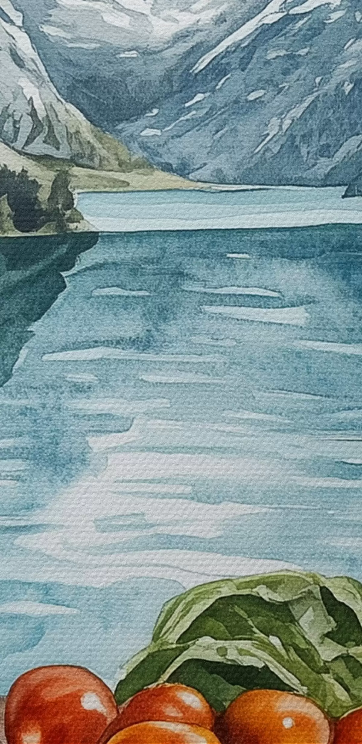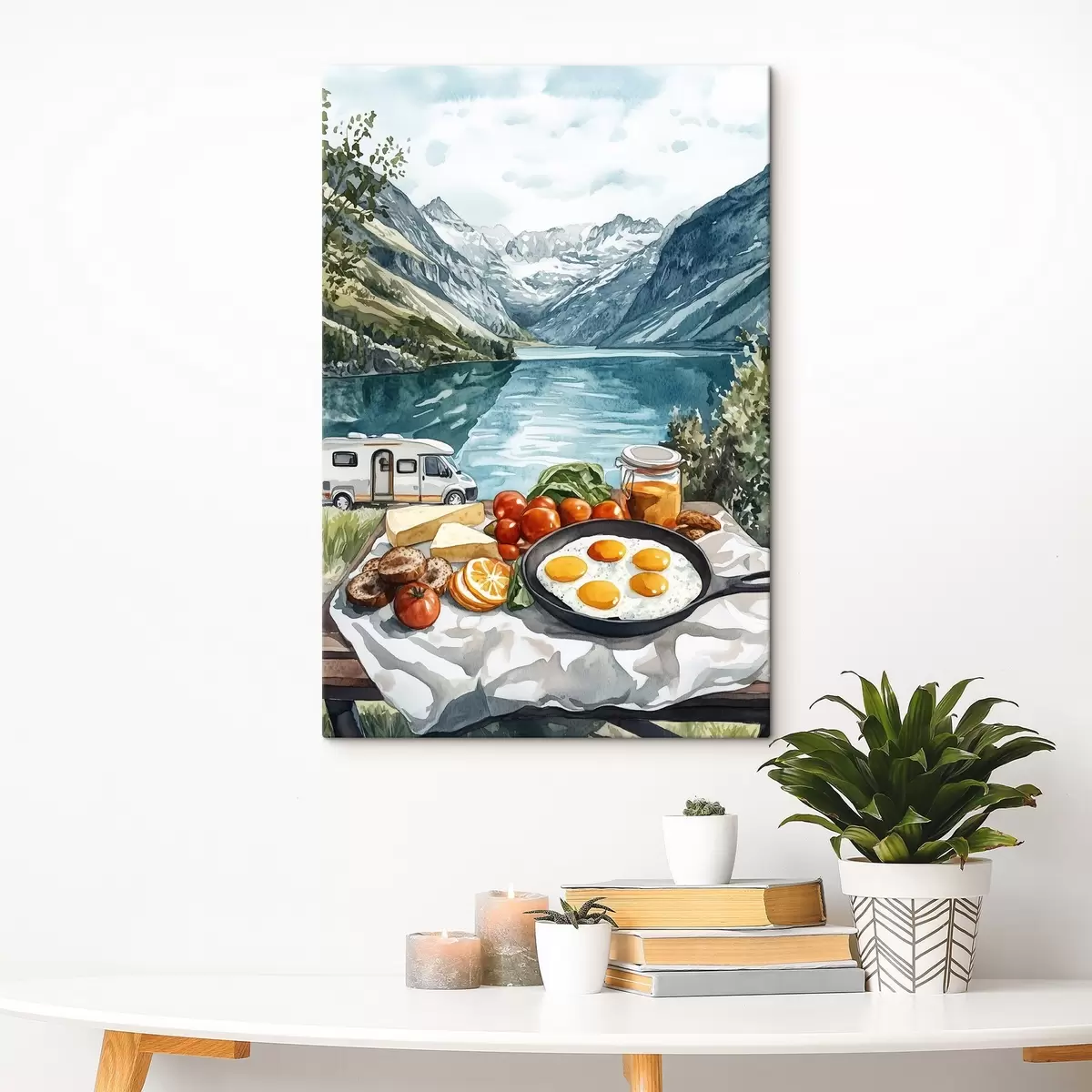 Schilderij Reizen, natuurlandschappen, aquarelstijl, Noorwegen, ontbijt, bestelwagen Art. s42431