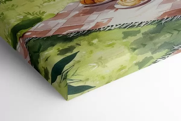 Schilderij Mooie romantische picknick bij het zomerse meer, fruit, groen Art. s42451