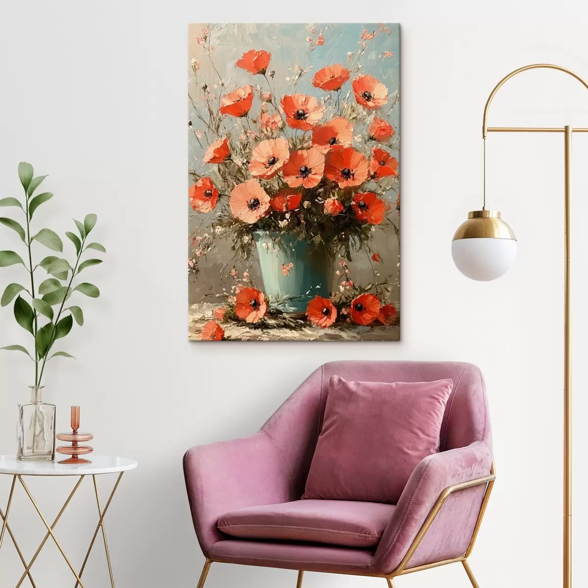 Er zijn drie soorten materiaal te bestellen: Economic Canvas - een dicht en duurzaam materiaal voor digitaal printen, identiek aan schildersdoek, waterdicht oppervlak, realistische weergave van details, materiaal met gemiddelde korrel. Premium Canvas - de textuur lijkt op die van schildersdoek (verweven kleine draden). Zachte, gedetailleerde reproductie van de afbeelding op een mat oppervlak. Eco-Premium - hoogwaardige 100% katoenen stof. Dankzij de natuurlijke katoenvezels is het materiaal duurzaam en slijtvast. Uitstekende kleurweergave en detail.