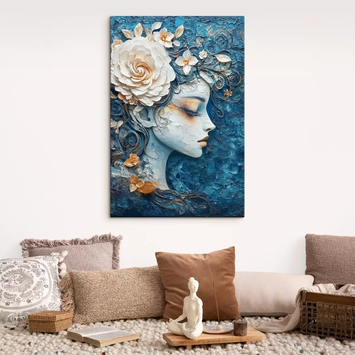 Schilderij Tekening van een meisje in profiel in blauwe tinten Art. s42495