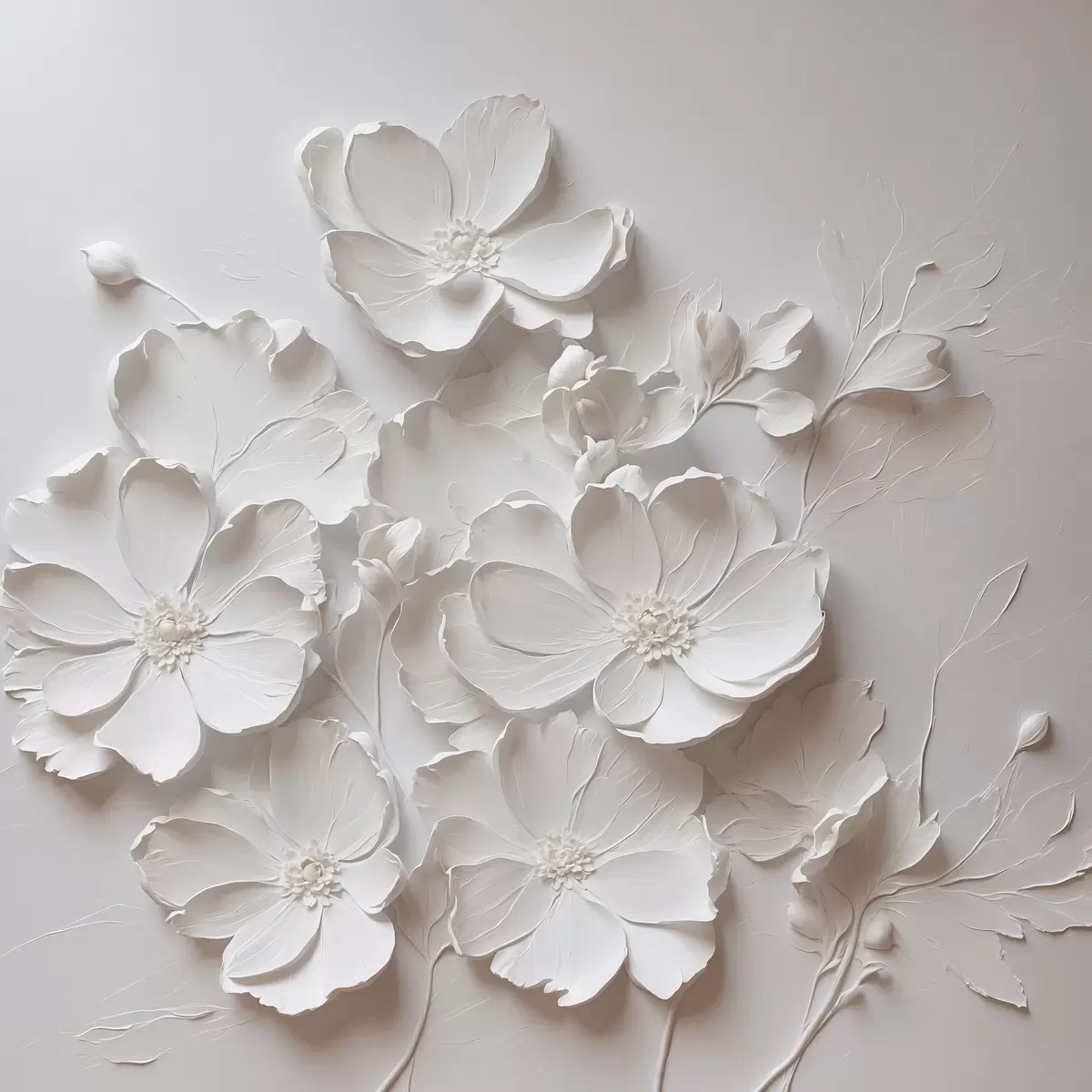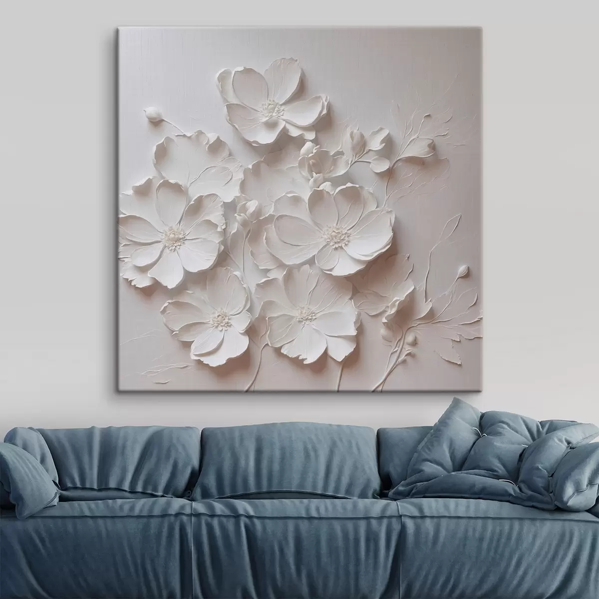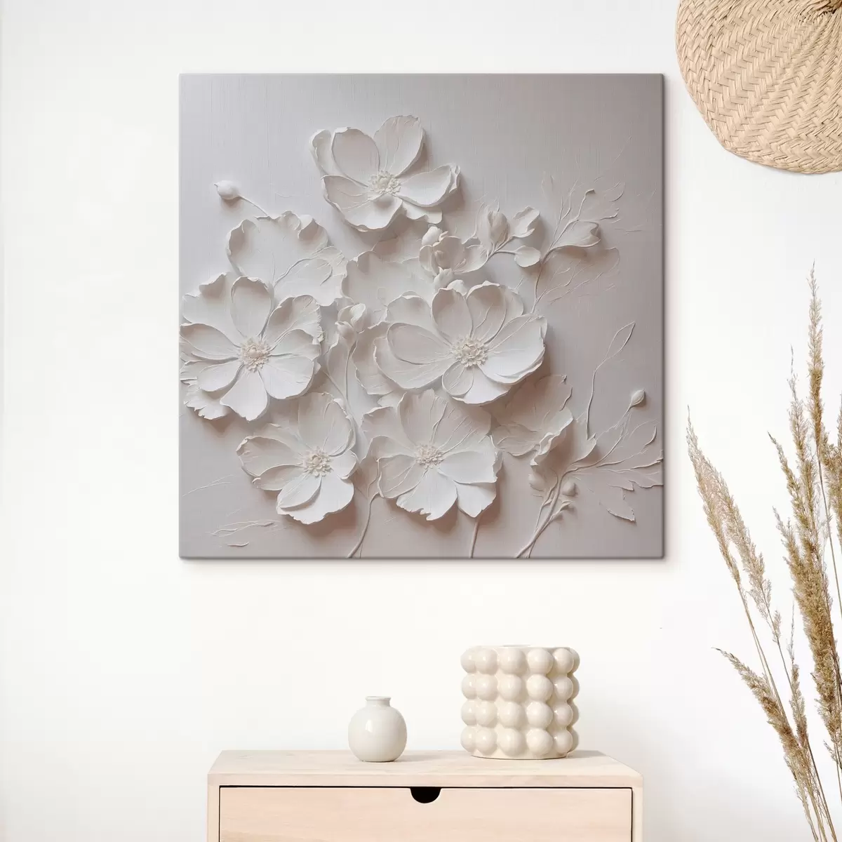 Schilderij Witte bloemen op witte achtergrond in olieverfschilderijstijl Art. s42516
