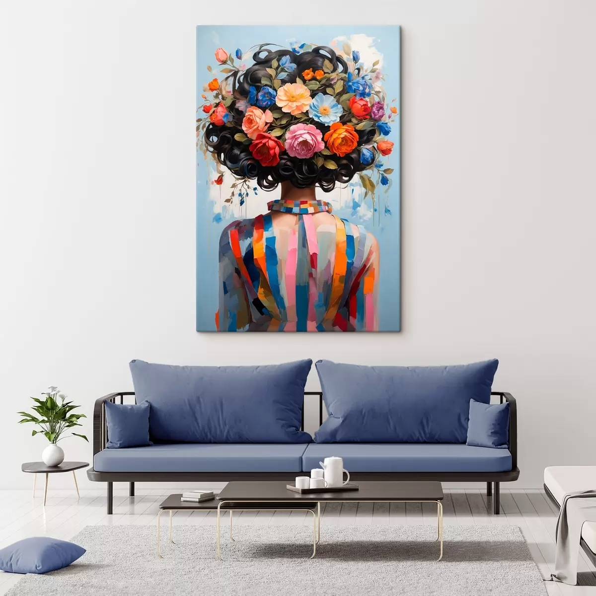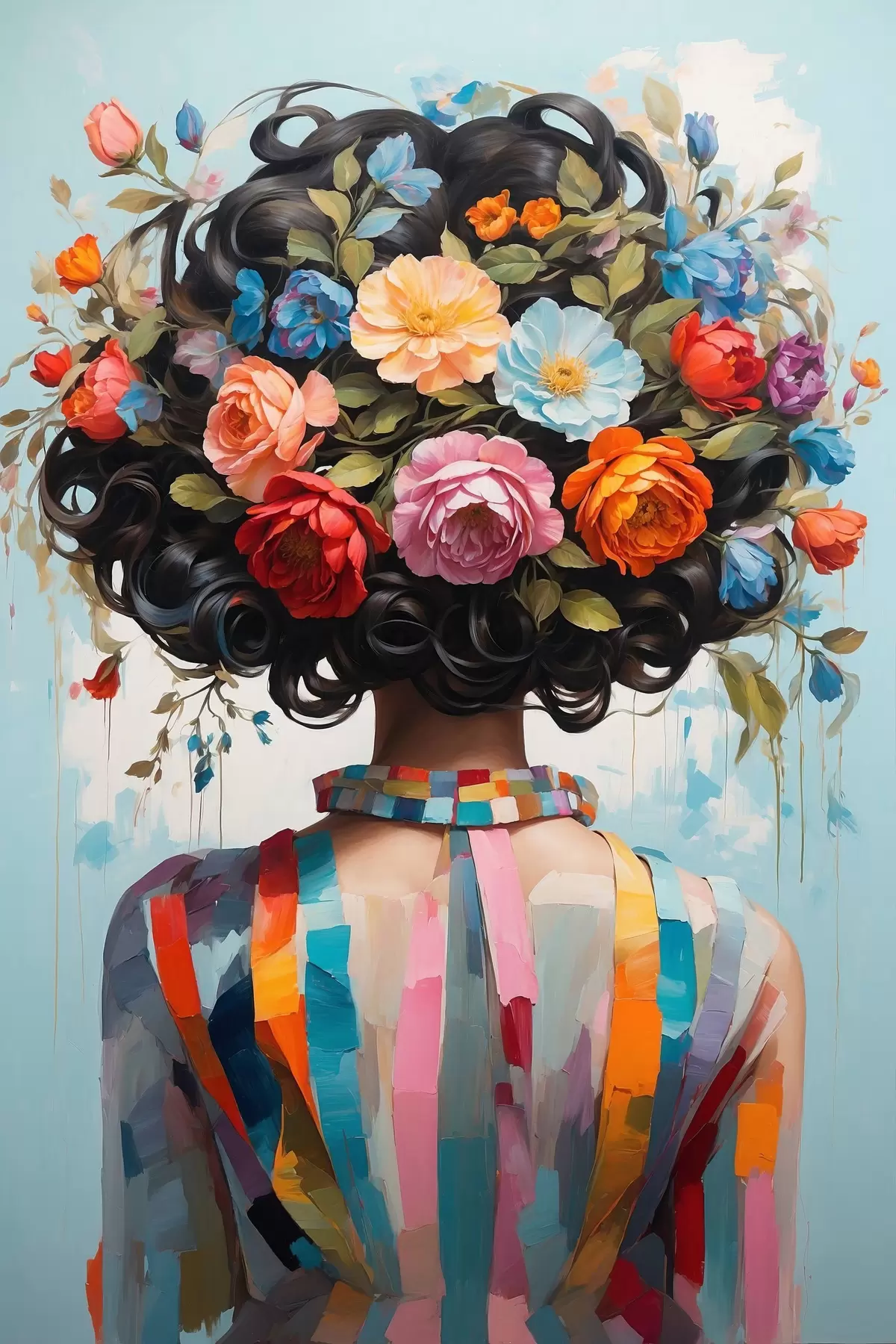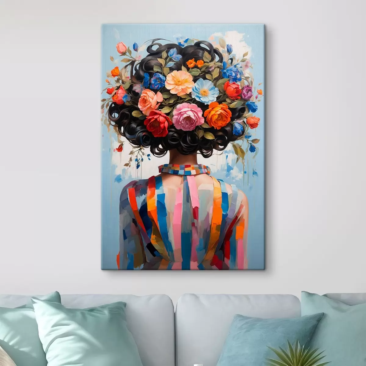 Schilderij Meisje in kleurrijke jurk en bloemen Art. s42524