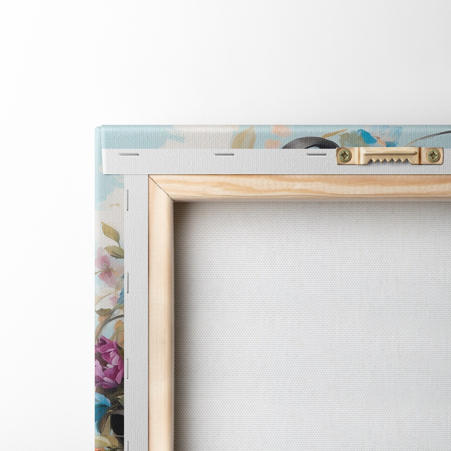 Om het doek op te spannen op spielatten zonder de afbeelding te beschadigen, gebruiken we gespiegeld beeld.