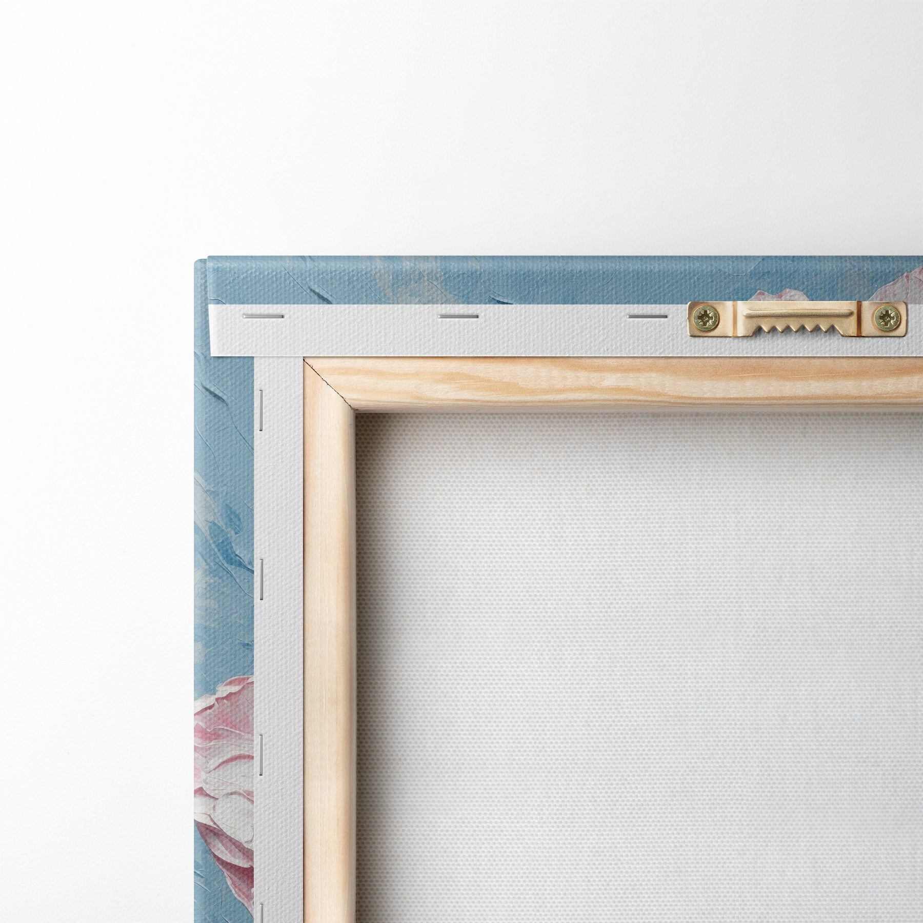 Om het doek op te spannen op spielatten zonder de afbeelding te beschadigen, gebruiken we gespiegeld beeld.