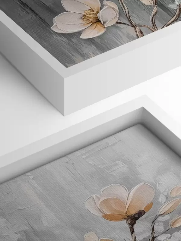 Er zijn drie soorten materiaal te bestellen: Economic Canvas - een dicht en duurzaam materiaal voor digitaal printen, identiek aan schildersdoek, waterdicht oppervlak, realistische weergave van details, materiaal met gemiddelde korrel. Premium Canvas - de textuur lijkt op die van schildersdoek (verweven kleine draden). Zachte, gedetailleerde reproductie van de afbeelding op een mat oppervlak. Eco-Premium - hoogwaardige 100% katoenen stof. Dankzij de natuurlijke katoenvezels is het materiaal duurzaam en slijtvast. Uitstekende kleurweergave en detail.