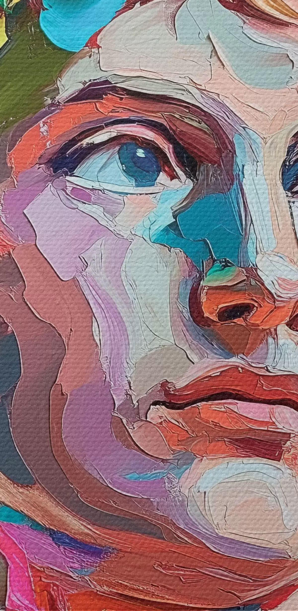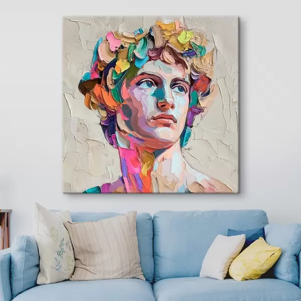 Schilderij Hoofd van David met veelkleurige strepen Art. s42607