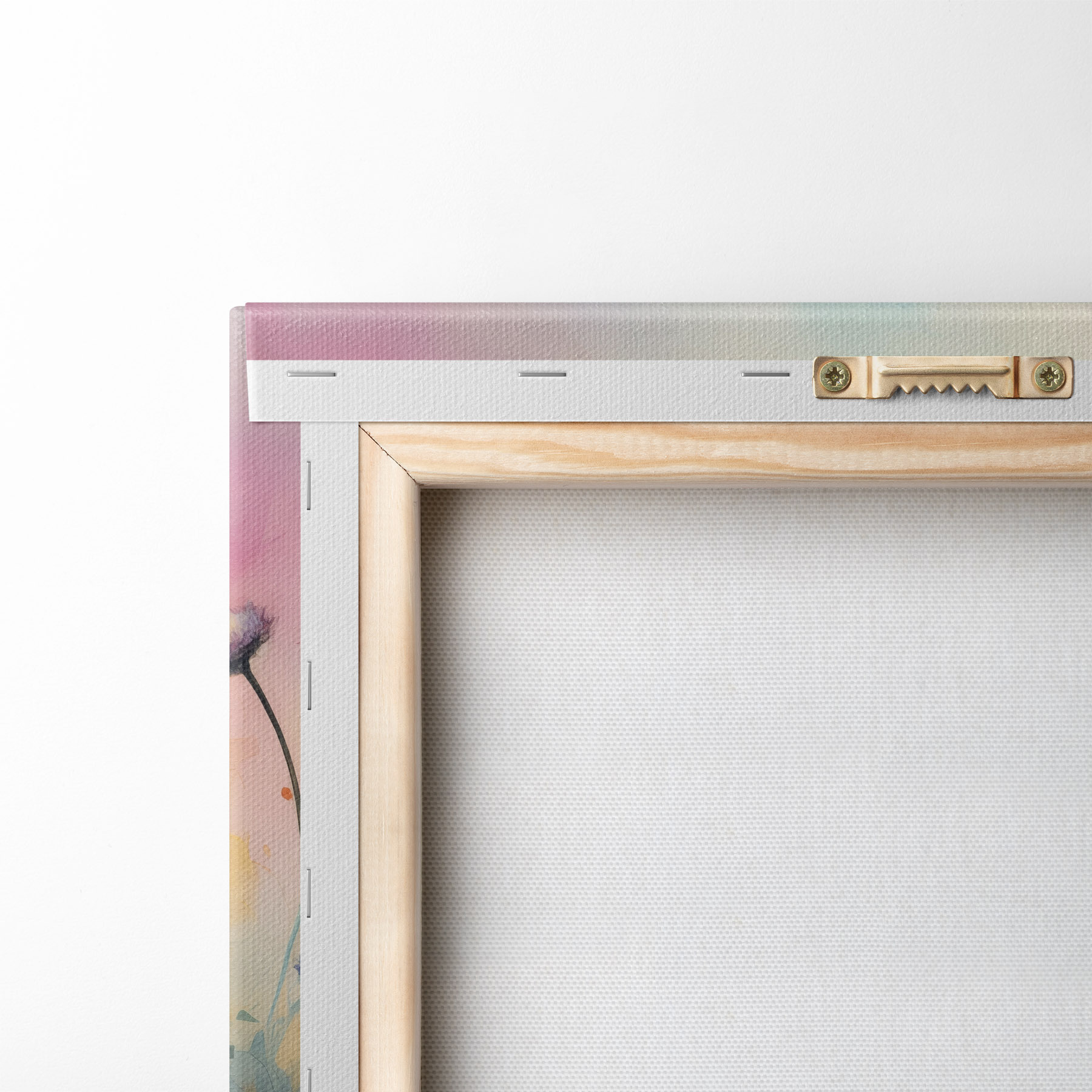 Schilderijen Een levendig veld van hoge en weelderige wilde bloemen tegen een zachte pastelkleurige aquarelachtige achtergrond s42726