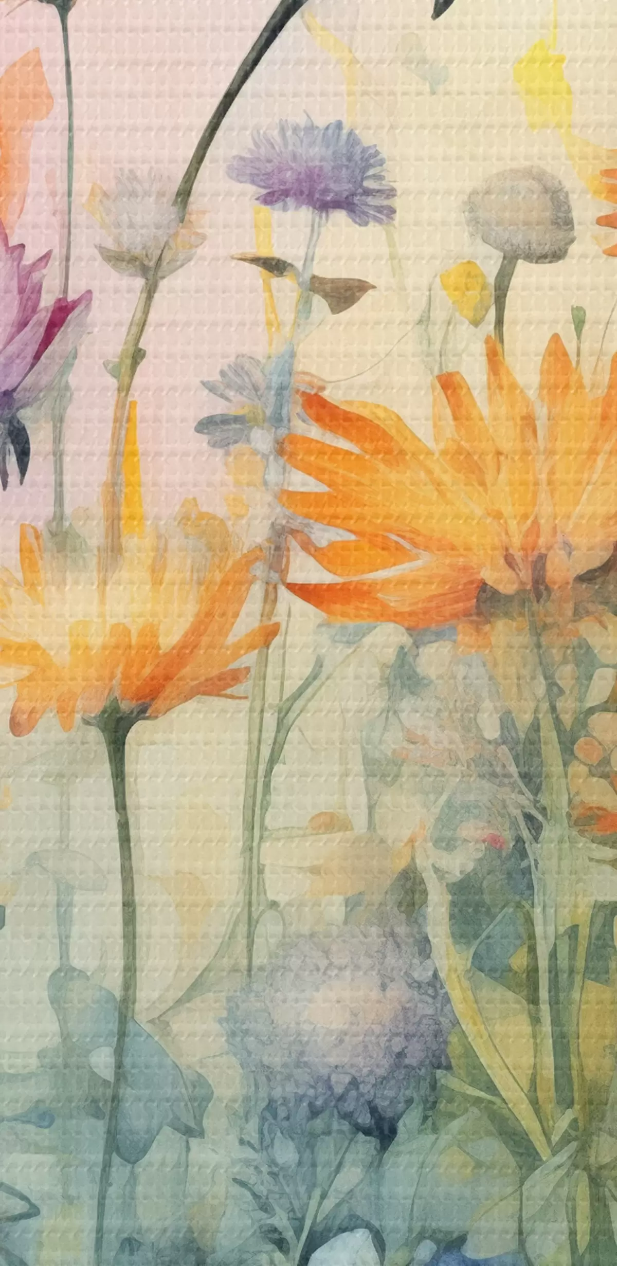 Schilderij Een levendig veld van hoge en weelderige wilde bloemen tegen een zachte pastelkleurige aquarelachtige achtergrond Art. s42726