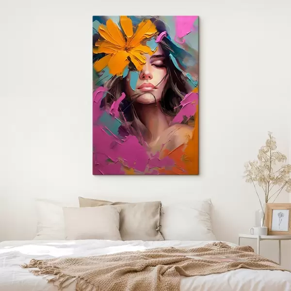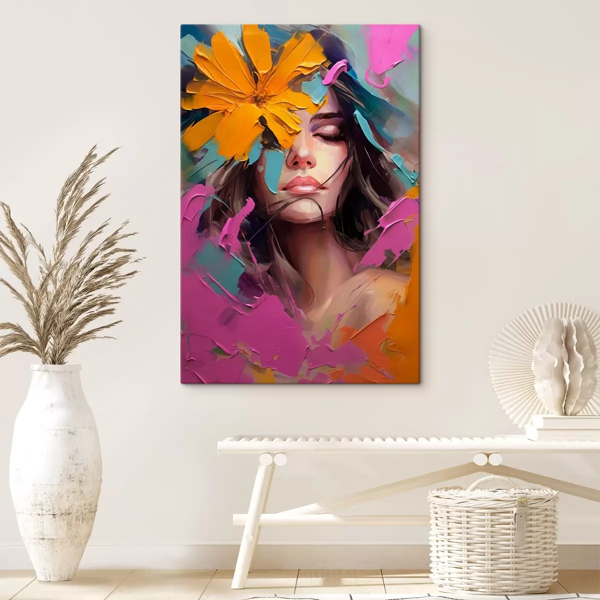Schilderij Abstract portret van een meisje met een bloem Art. s42748