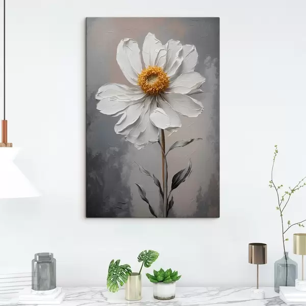 Schilderij Kamille op witte achtergrond in olieverfschilderijstijl Art. s42758