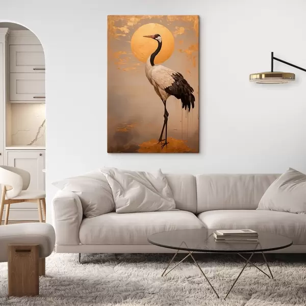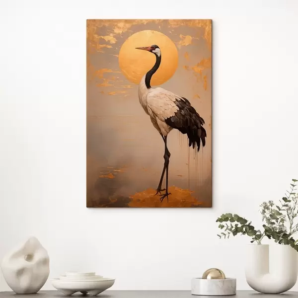Schilderij Kraanvogel tegen de achtergrond van de zon in acrylverfstijl Art. s42773