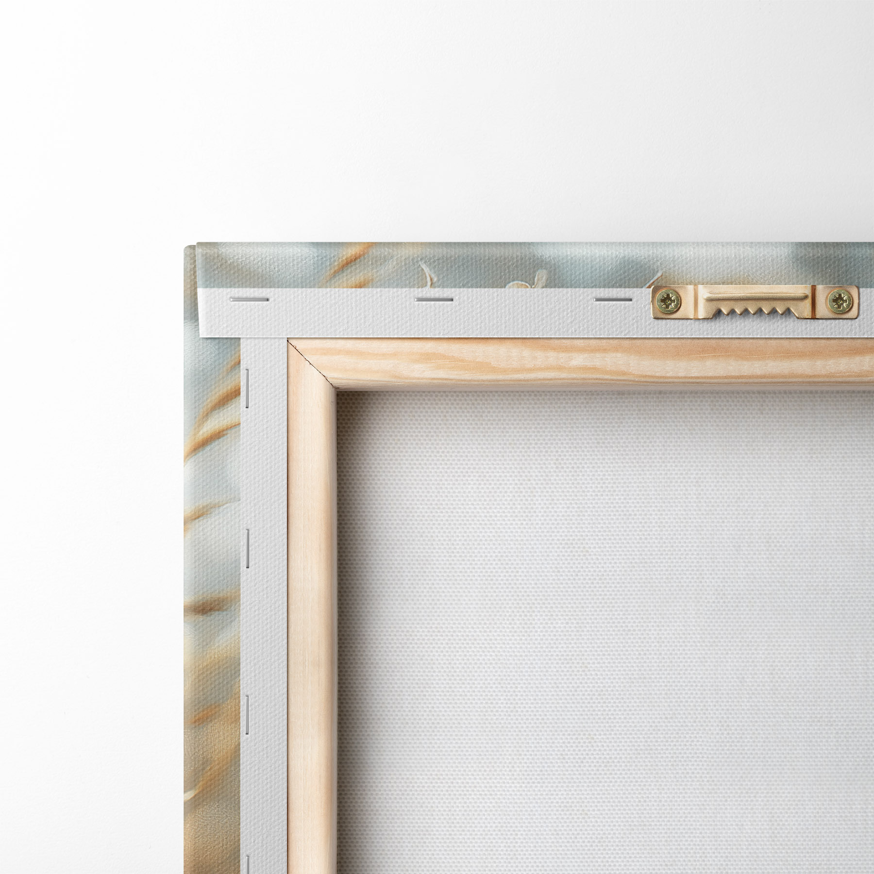Om het doek op te spannen op spielatten zonder de afbeelding te beschadigen, gebruiken we gespiegeld beeld.
