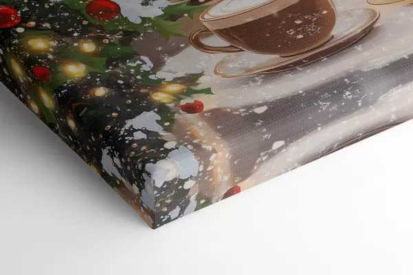 Schilderijen Gezellig wintercafé, kopjes koffie, acrylstijl, oude stadsarchitectuur s42795