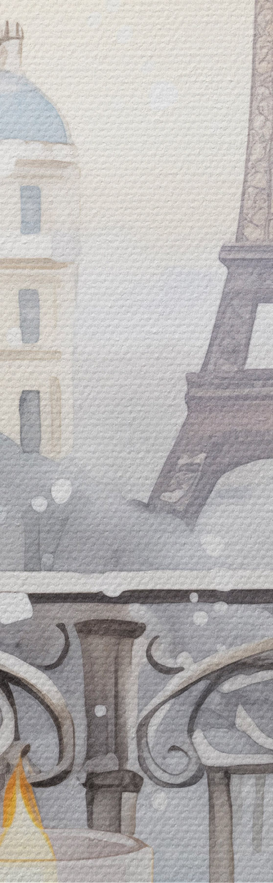 Schilderij Mooi café in Parijs, theekopjes, romantisch uitzicht, winter, aquarel stijl Art. s42799