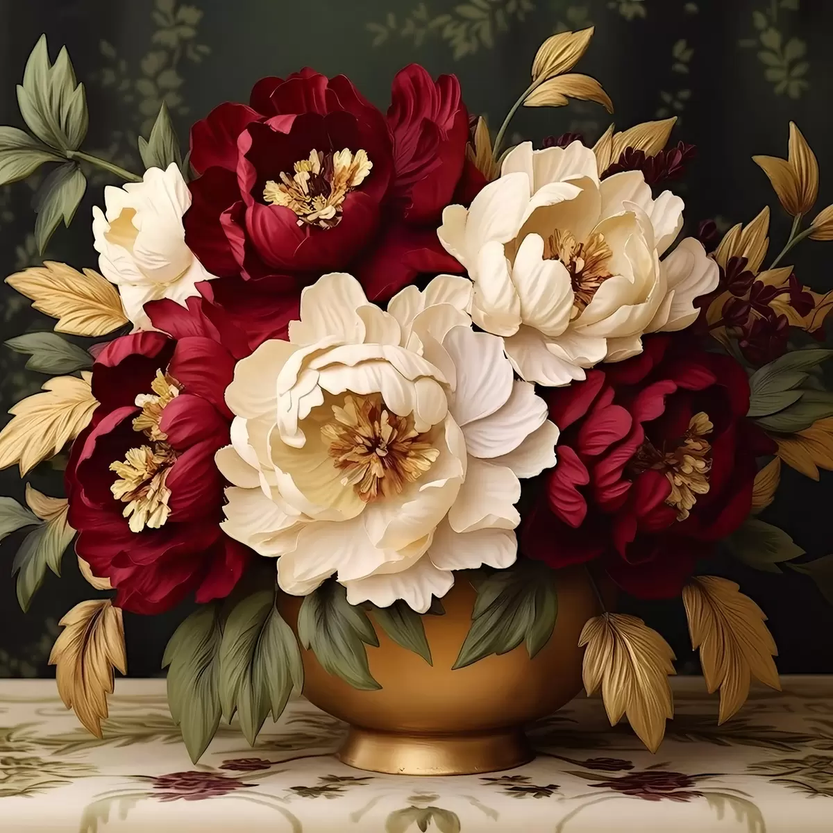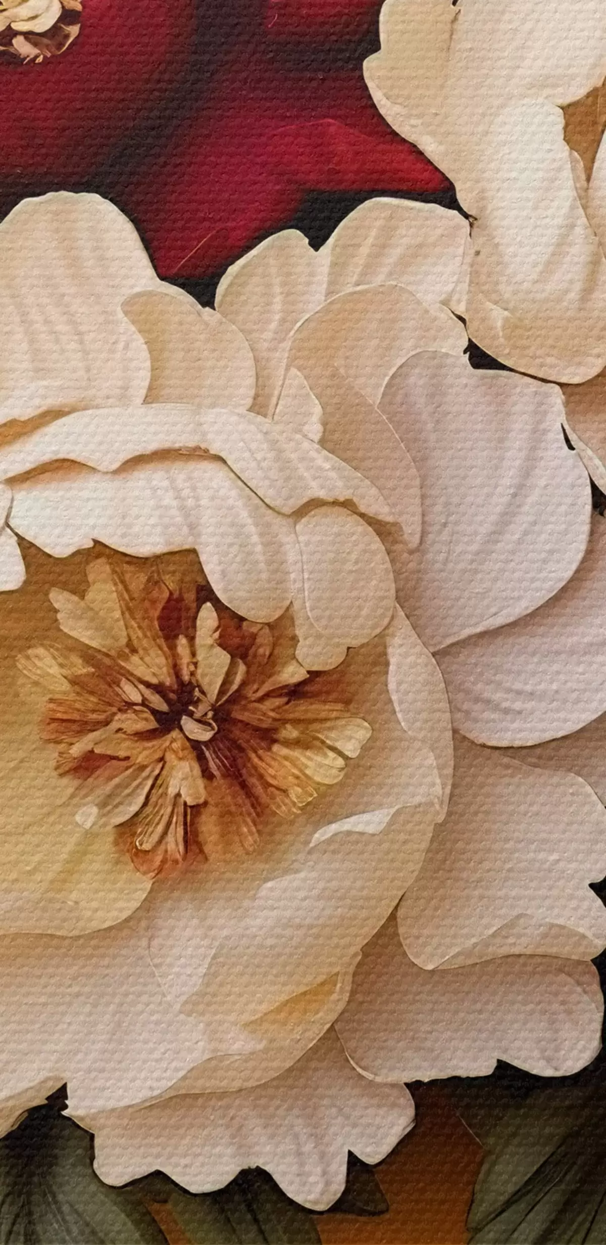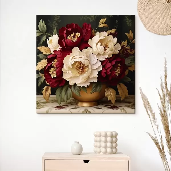 Schilderij Rode en witte pioenrozen in een vaas Art. s42820