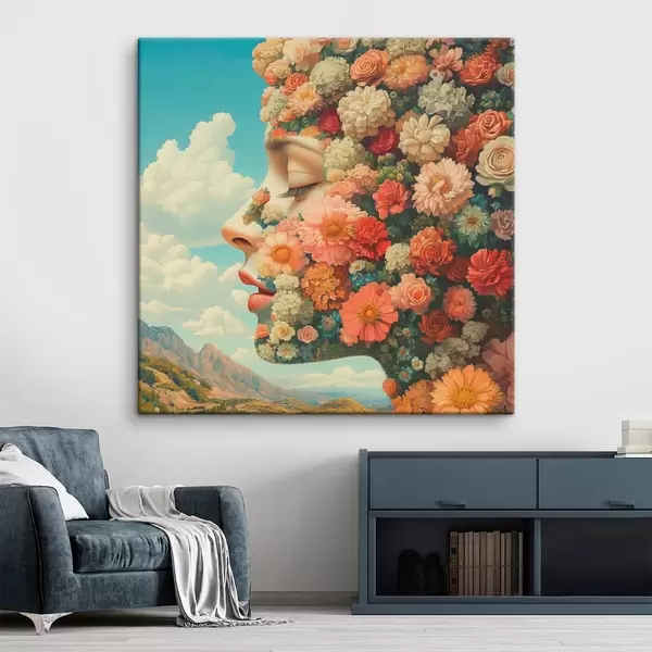 Schilderij Gezicht in profiel in bloemen Art. s42861
