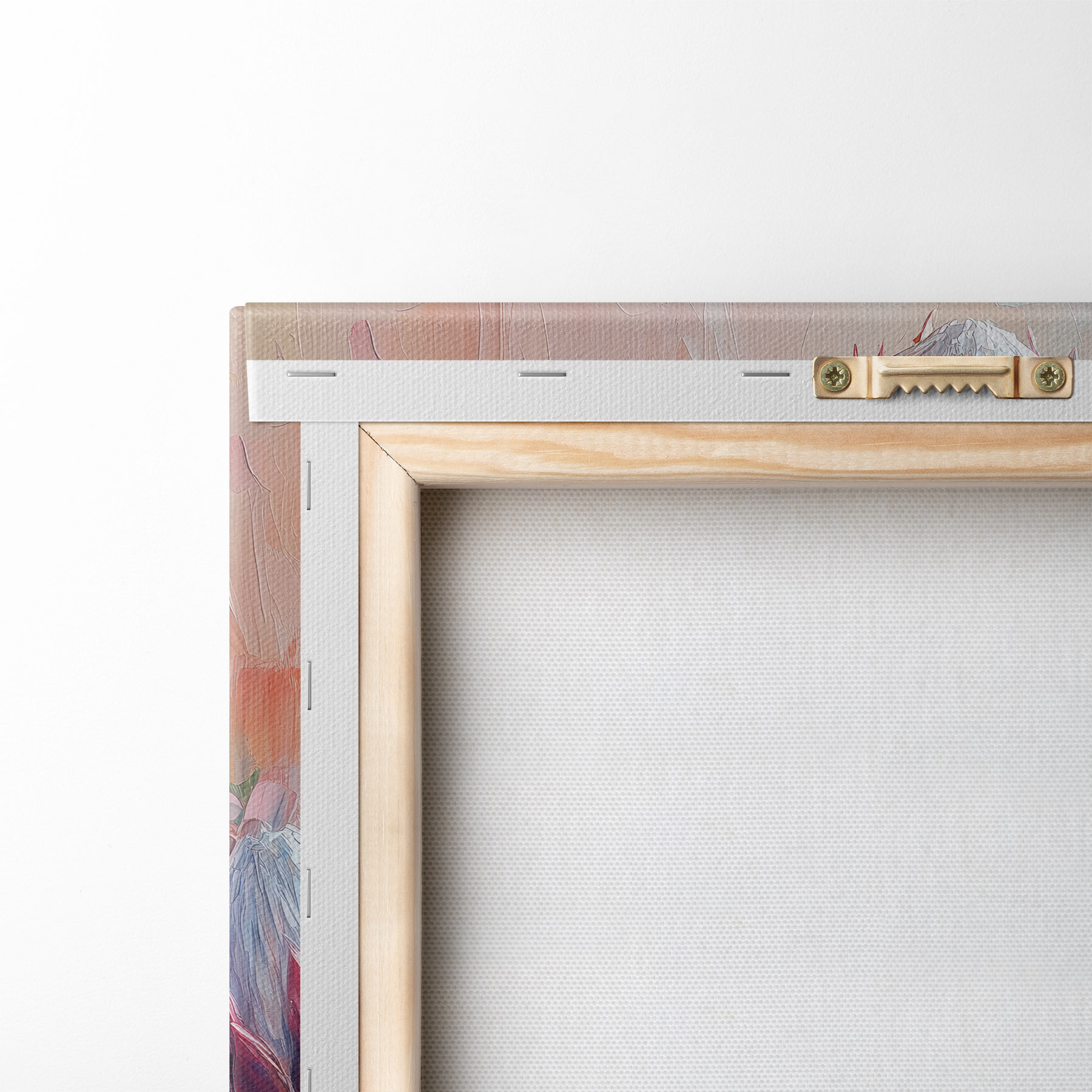 Om het doek op te spannen op spielatten zonder de afbeelding te beschadigen, gebruiken we gespiegeld beeld.
