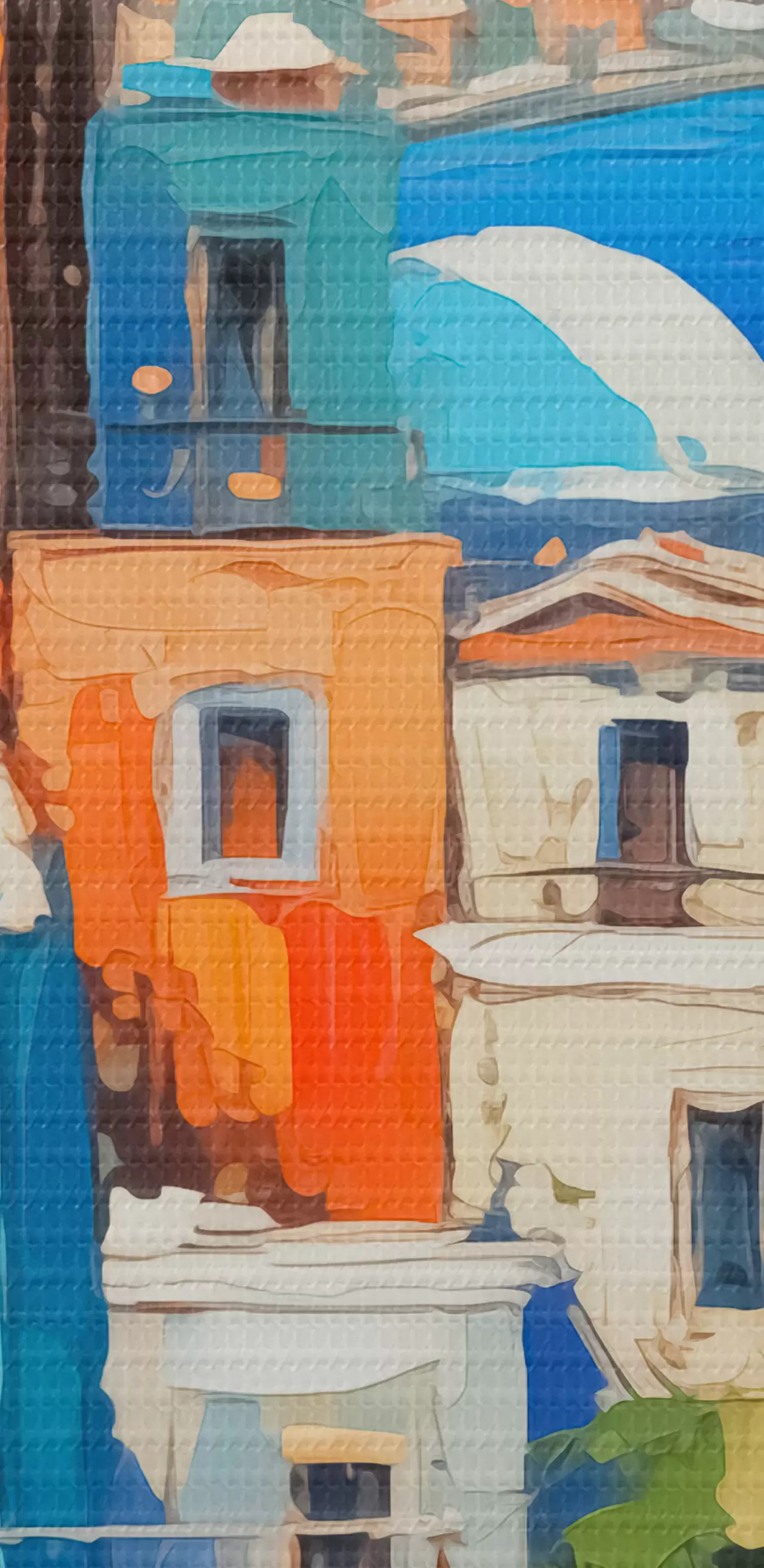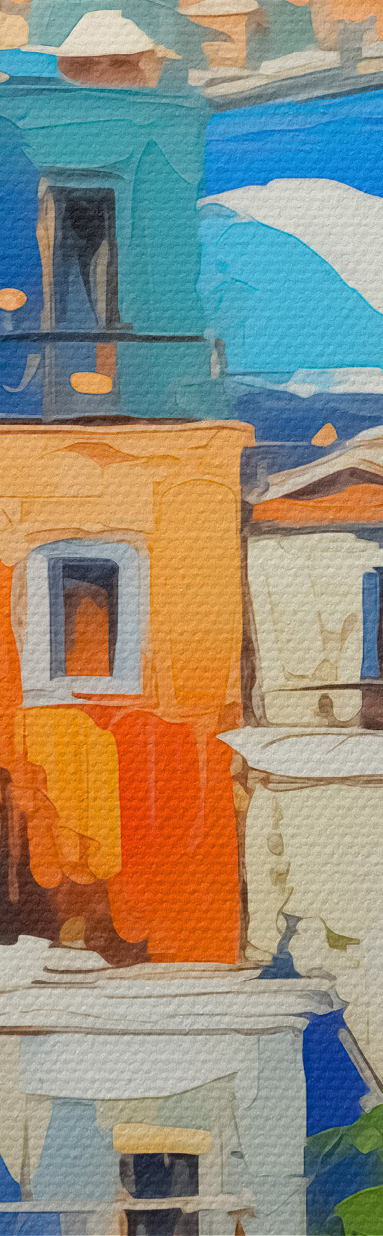 Schilderij Huizen aan zee imitatie van schilderstreken Art. s42899