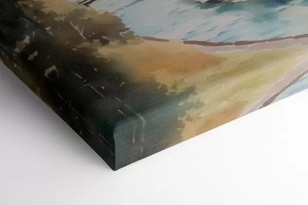 Schilderij Dorp bij de bergen imitatie aquarel Art. s42964