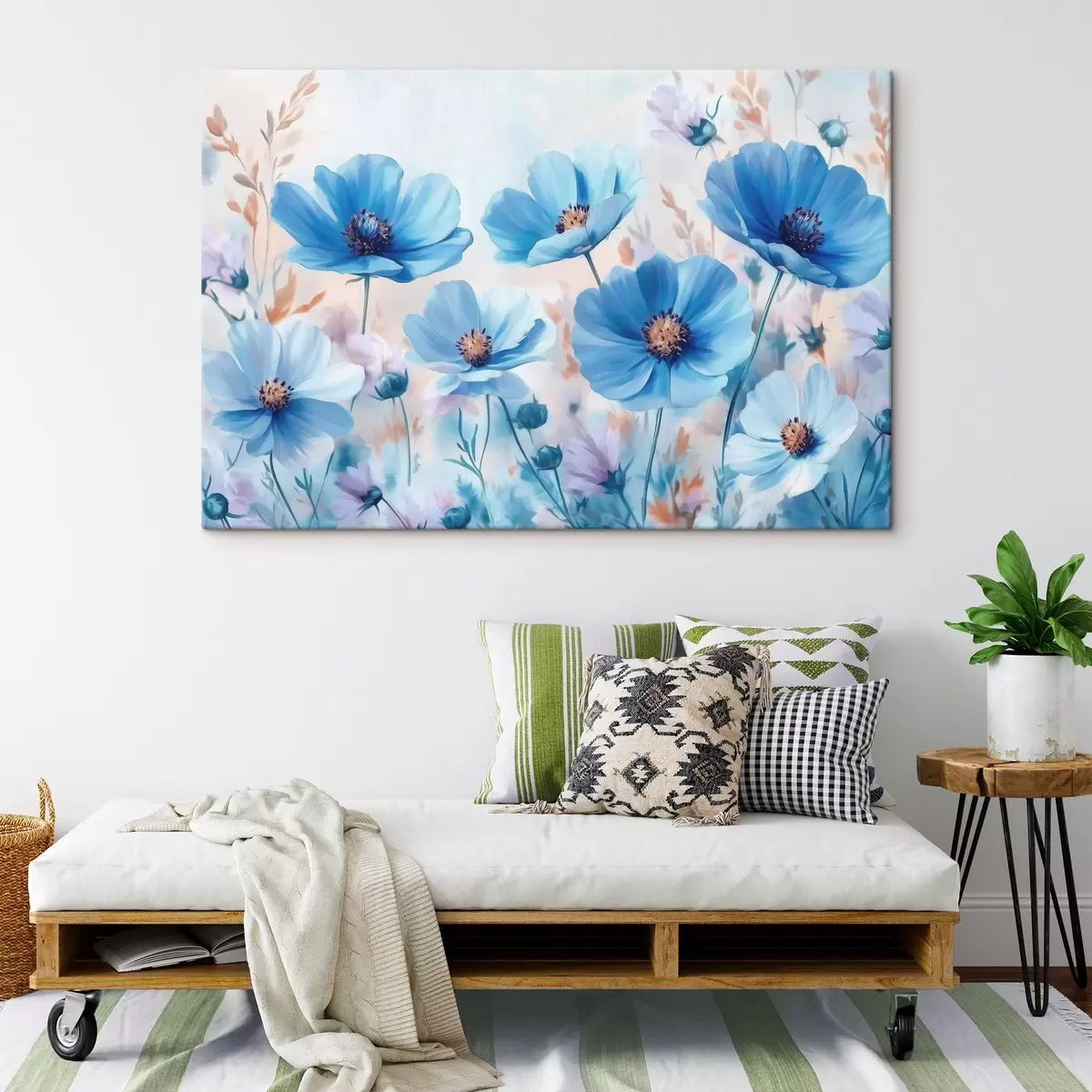 Schilderij Blauwe bloemen op een blauwe achtergrond Art. s42971