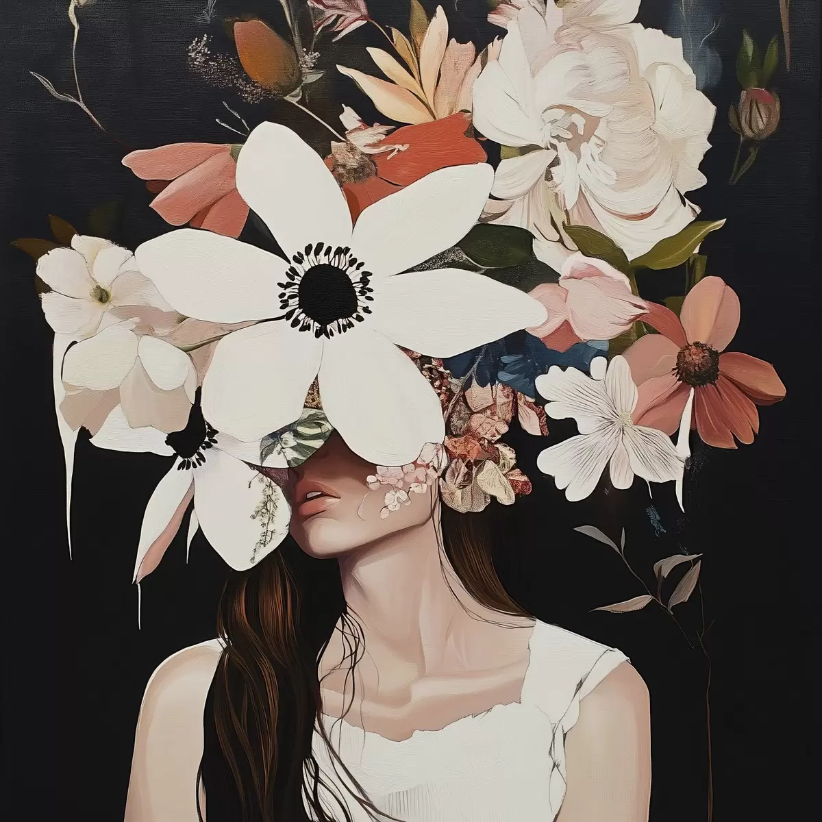 Schilderij Meisje met bloemen op haar gezicht Art. s42989