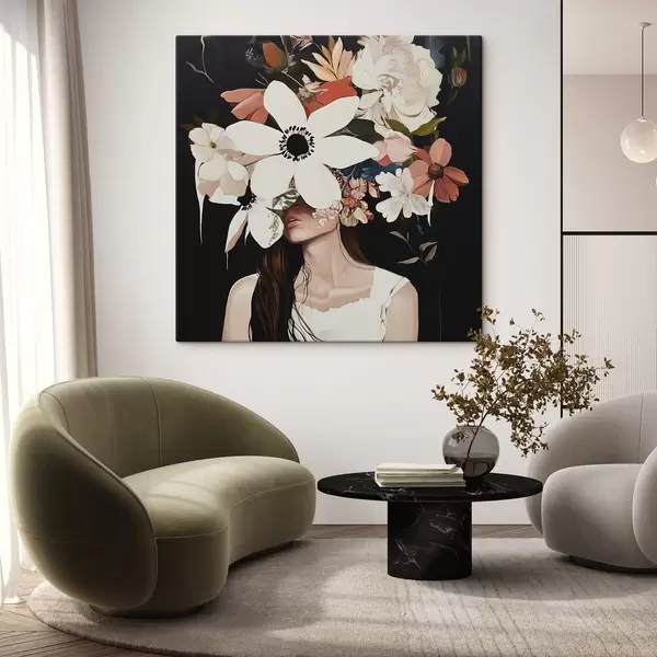 Schilderijen Meisje met bloemen op haar gezicht s42989
