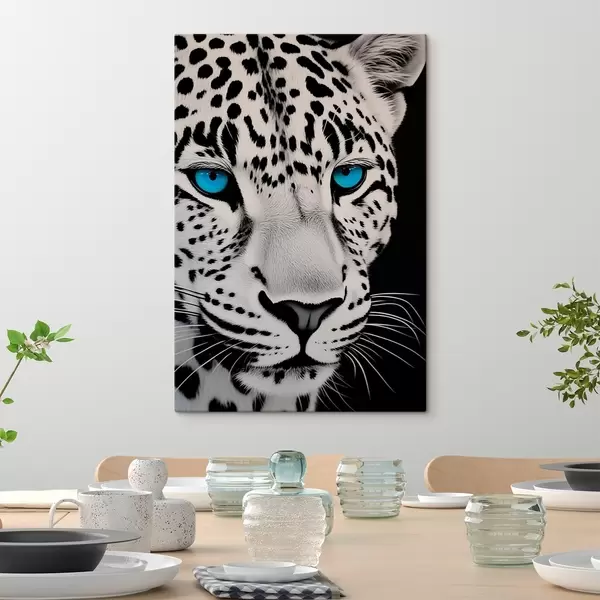Schilderij Zwart-wit portret van een luipaard met blauwe ogen Art. s43008