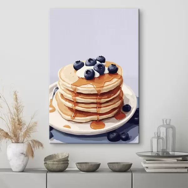 Schilderij Pannenkoeken met stroop en bosbessen op een bord Art. s43009