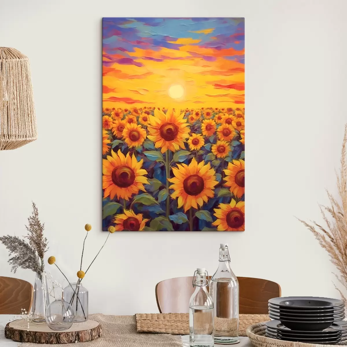 Schilderij Zonnebloemveld bij zonsondergang Art. s43010