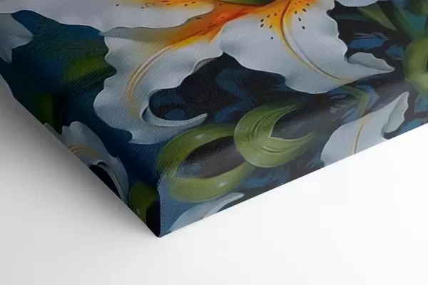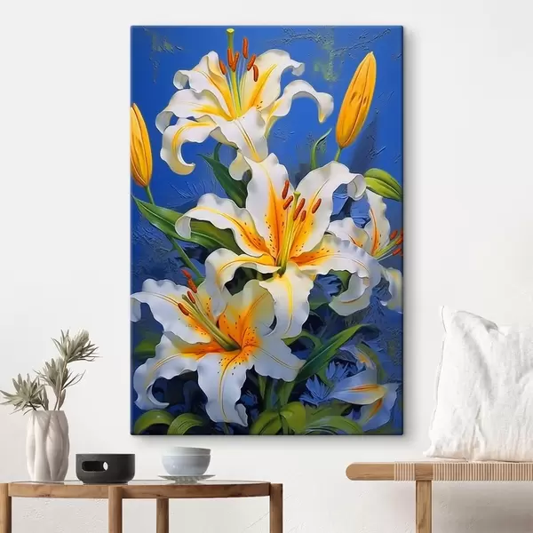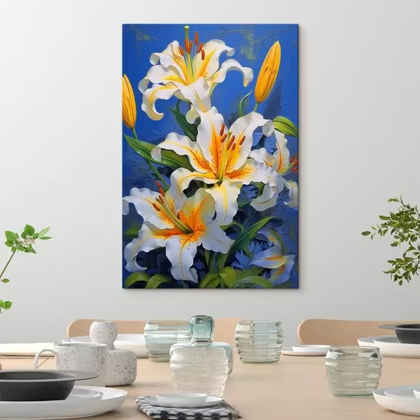 Schilderij Witte lelies op een blauwe achtergrond Art. s43018