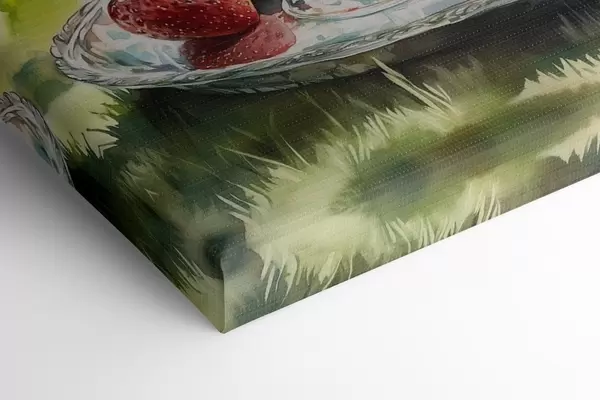 Schilderij Zomer picknick met champagne en aardbeien, aquarel tekening Art. s43055