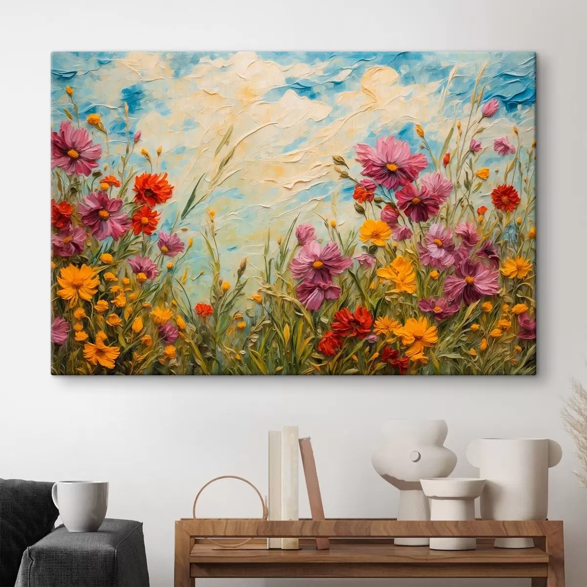 Schilderijen Bloemenveld in olieverfstijl s43102