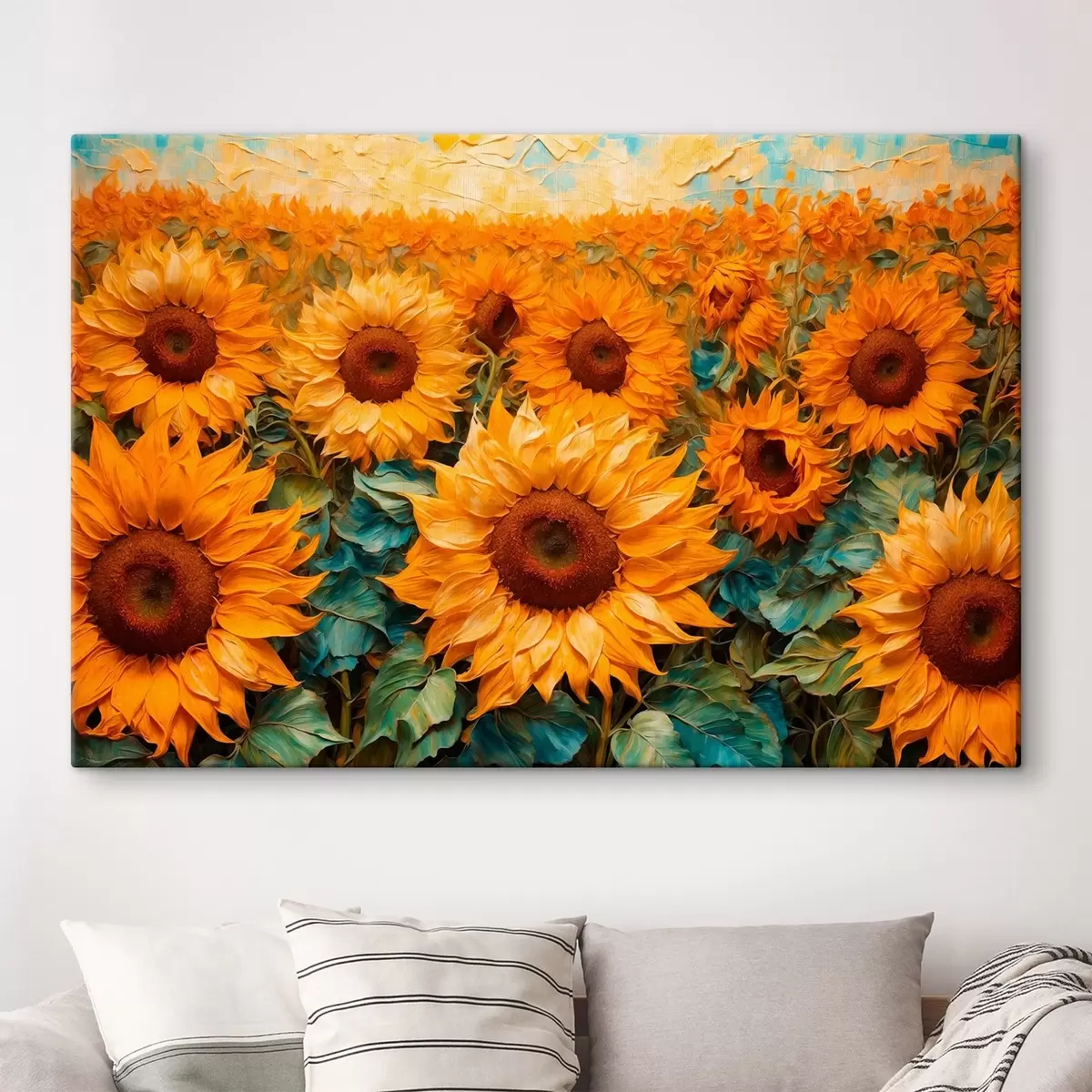 Schilderij Zonnebloemenveld in acrylschilderstijl Art. s43104