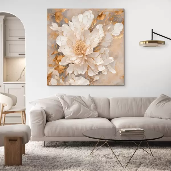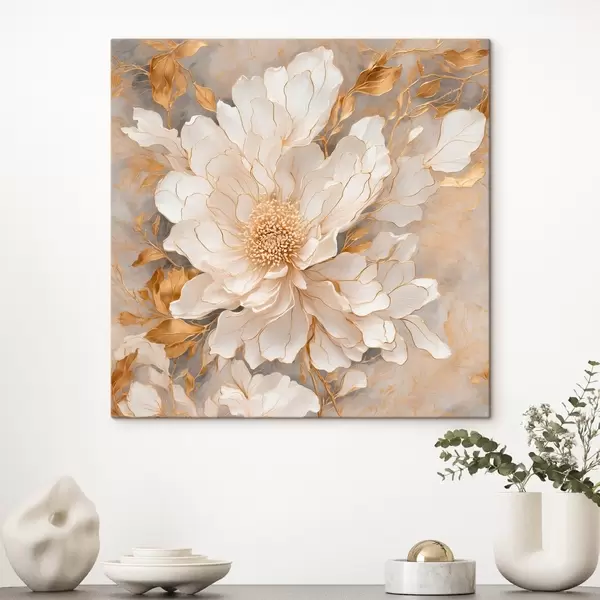 Schilderij Witte bloem met bladeren in acrylschilderstijl Art. s43115